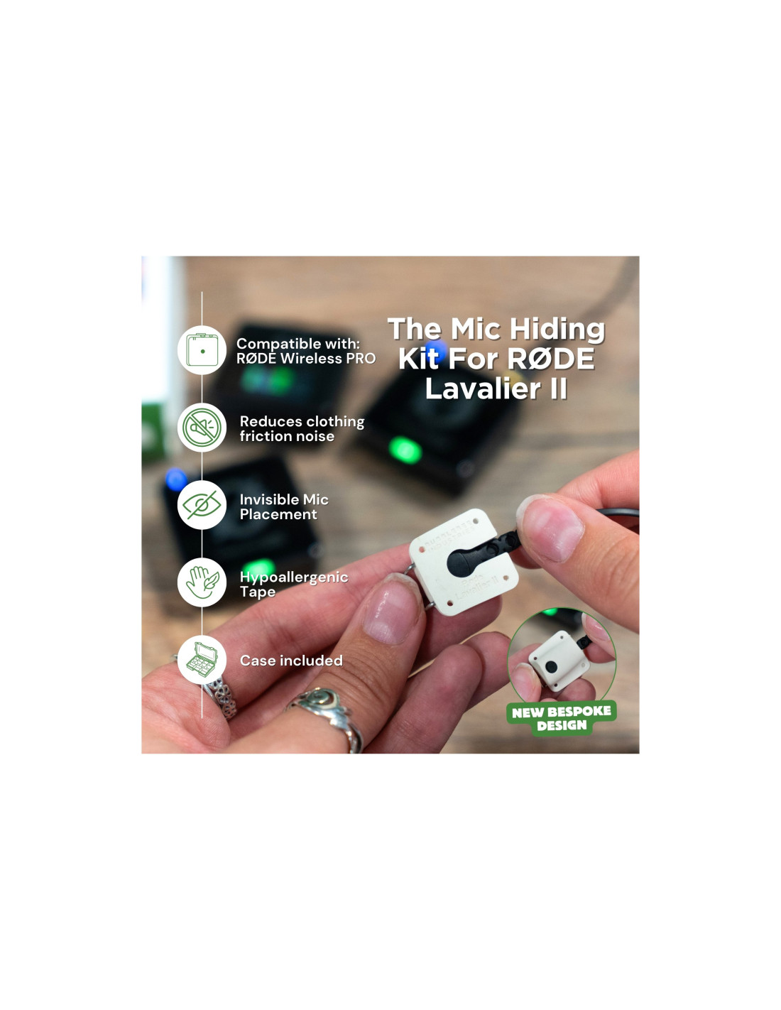 The Outdoor Mic Kit for Røde Lavalier II, Black La boîte à outils idéale pour protéger vos microphones Røde Lavalier II du bruit du vent lors des tournages en extérieur. The Outdoor Mic Kit for RØDE Lavalier II, Black – La boîte à outils idéale pour protéger vos microphones Røde Lavalier II du bruit du vent lors des tournages en extérieur. TOUT CE DONT VOUS AVEZ BESOIN DANS CE KIT ESSENTIEL POUR ENREGISTRER UN SON DE QUALITÉ AVEC LE RØDE LAVALIER II EN EXTÉRIEUR. Nous avons tous déjà vu des images où le microphone capte ces bruits de vent désagréables ; c’est très distrayant et cela gâche la vidéo… Préparez-vous à reléguer cela au passé avec The Outdoor Mic Kit for RØDE Lavalier II, soigneusement sélectionné pour vous aider à améliorer la qualité sonore. Il s’agit du kit d’accessoires idéal à utiliser avec le RØDE Lavalier II et le kit RØDE Wireless Pro.