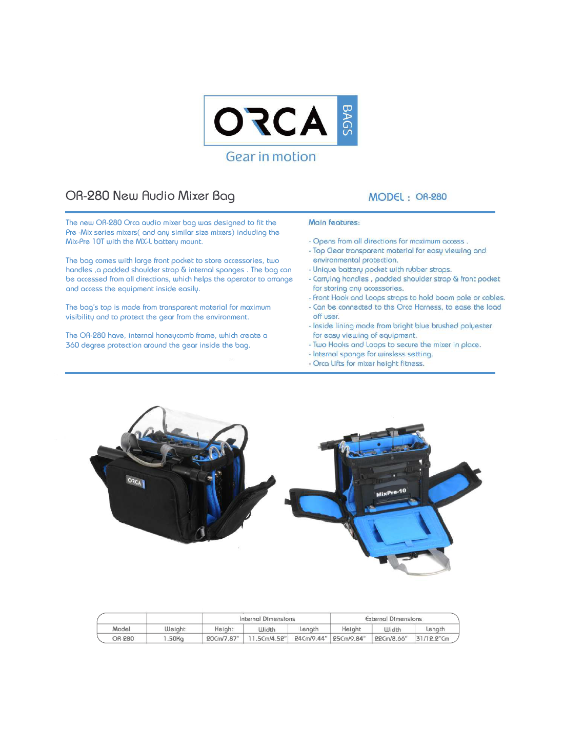 The ORCA OR-280 Small Audio Mixer Bag was designed for sound professionals using MixPre series recorders, including the MixPre-10 with the MX-LMount battery sled.