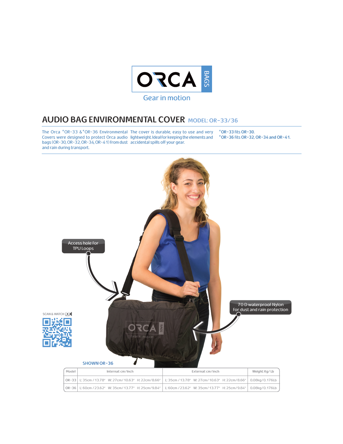 The OR-33 is ideal for professional sound recordists working in challenging conditions and is compatible with ORCA audio bags OR-27, OR-28, OR-30 as well as the entire ORCA Low Profile series (OR-268, OR-270, OR-272), making it a versatile protective solution for field recording.