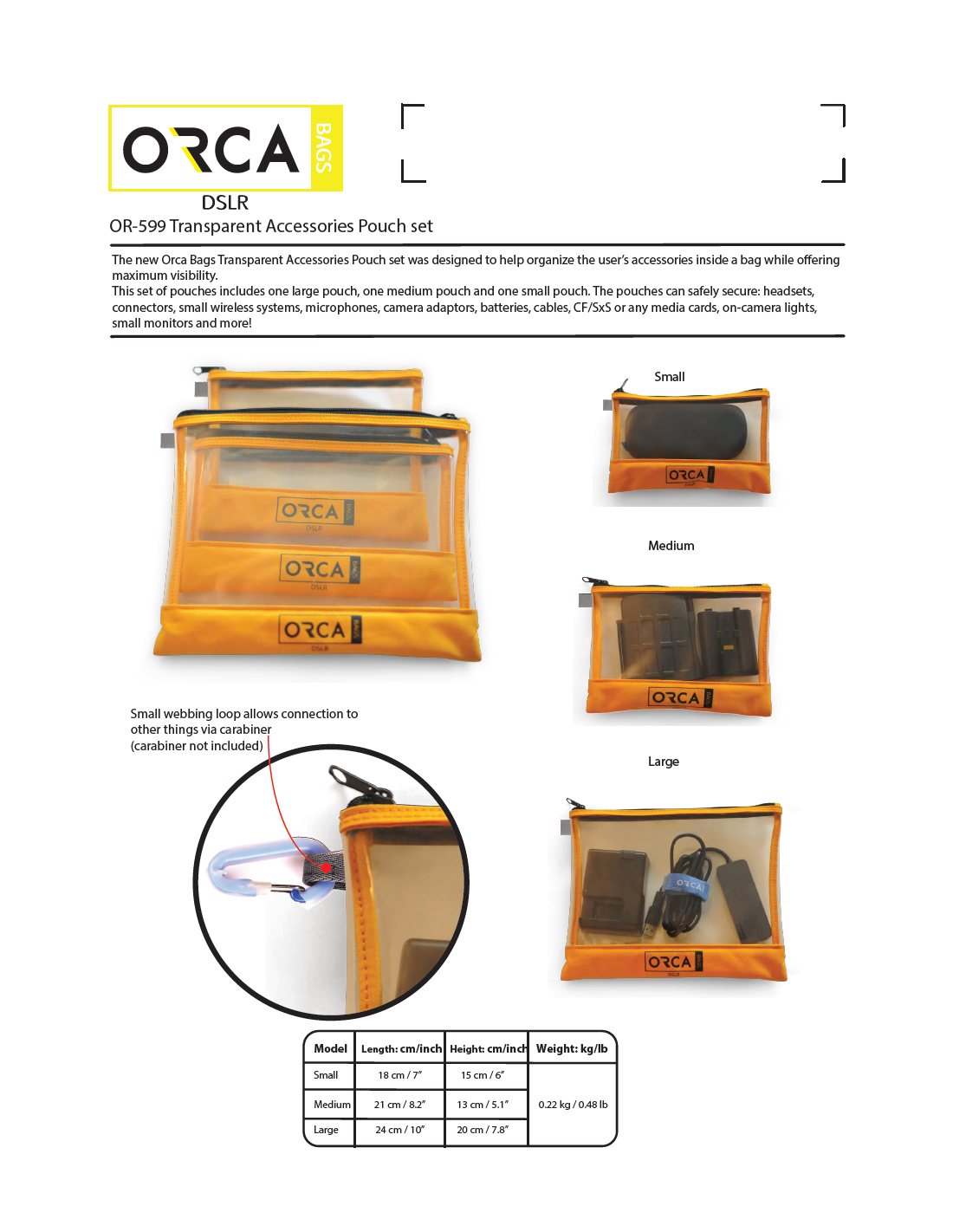 The ORCA OR-599 Transparent Accessories Pouch Set was designed to help professionals organize their accessories efficiently while maintaining clear visibility of the contents.