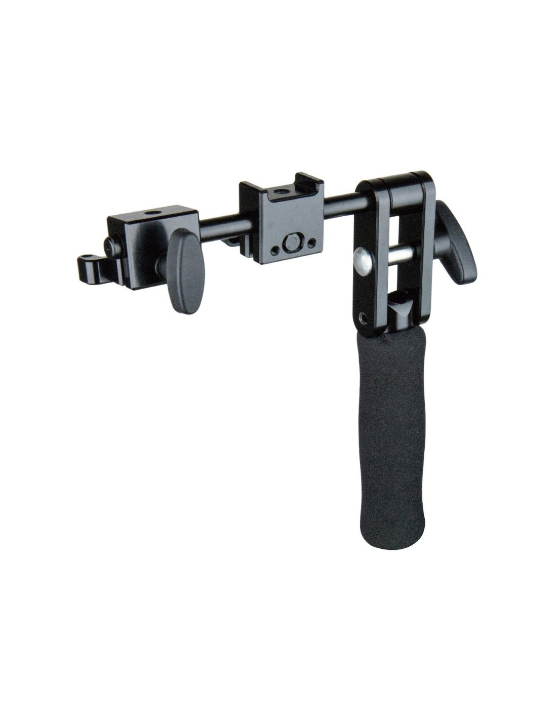 The KUPO KS706 handle and stand are designed for use with the ARRI WCU-4 wireless camera remote. The ergonomic handle allows for easy and comfortable handling of the remote control, while the integrated monitor stand allows a medium-sized monitor to be attached for convenient viewing of images. The stand is sturdy and can be mounted on a tripod for hands-free operation. With its functional design and high-quality construction, the KUPO KS706 is an ideal accessory for professional camera operators.