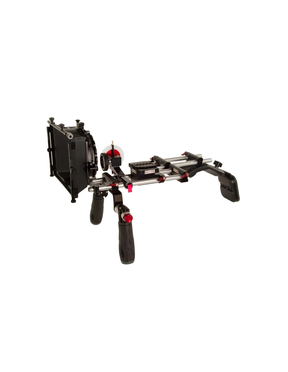 It includes the DSLR Kirk Neff 2.0 baseplate with Delta adapter, a V-Lock quick release camera plate, 15 mm rods (10’’ and 12’’), a friction Follow Focus with 0.8 gear clic, a 4x4 matte box, a composite mini shoulder pad and a back pad.