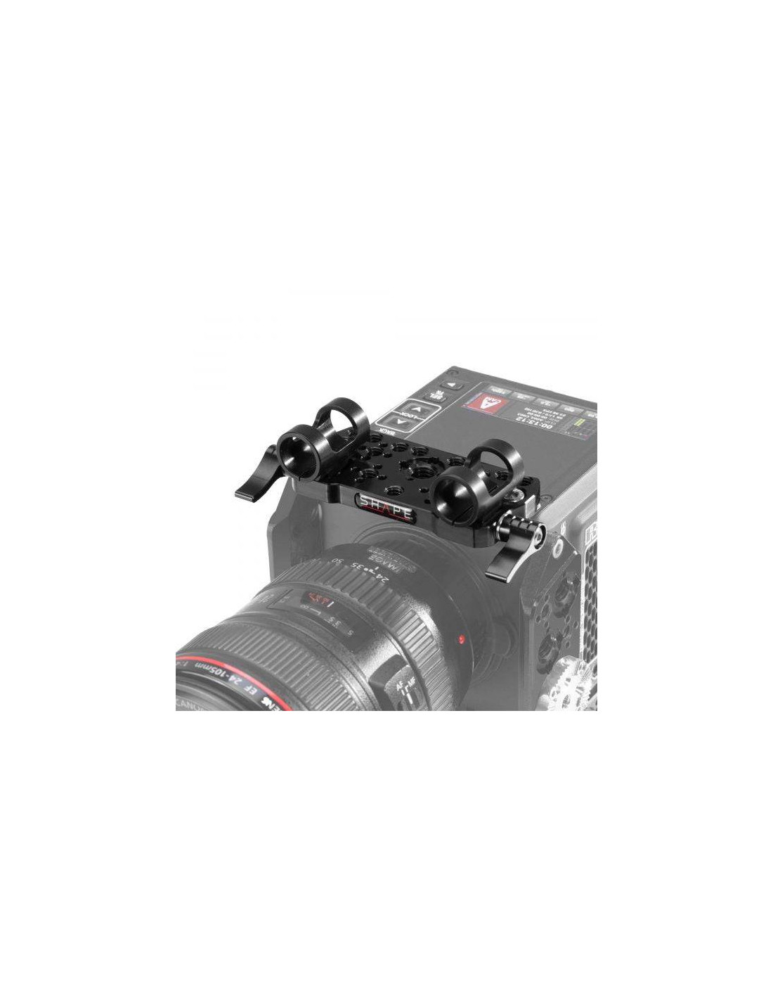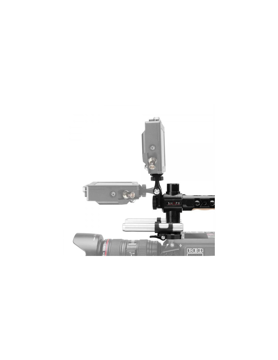 The CNC aluminum and Canadian maple L-shaped top handle integrates SHAPE Push-Button technology and a tiltable mount for accessories (monitor, mic, video light up to 4.4 lb).