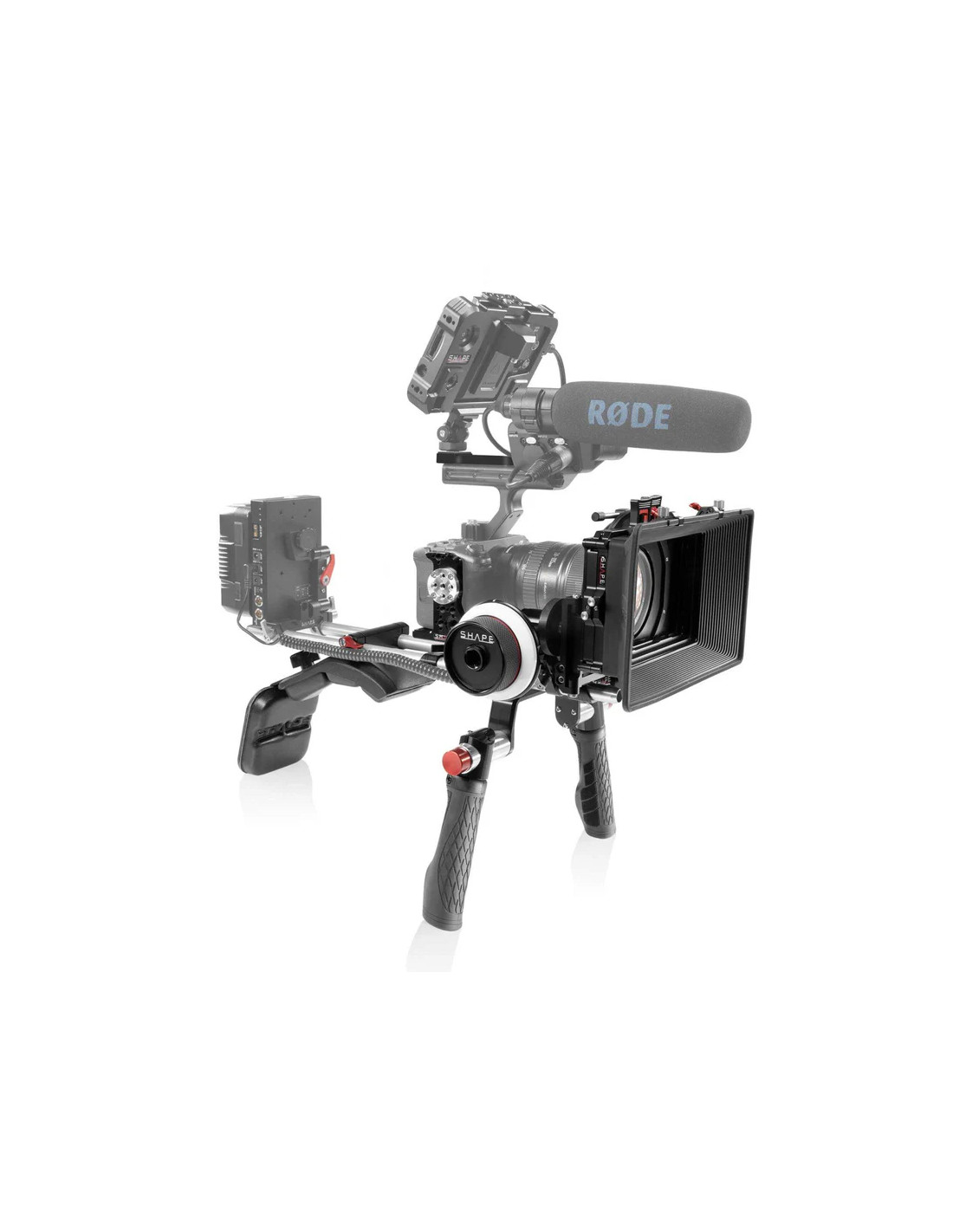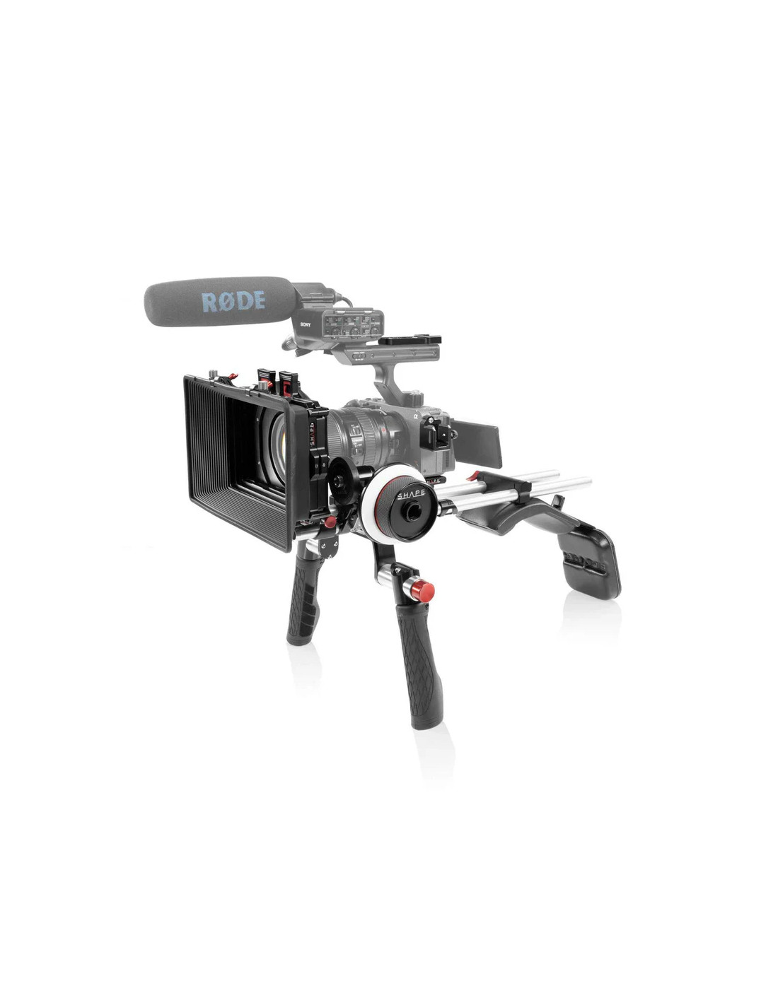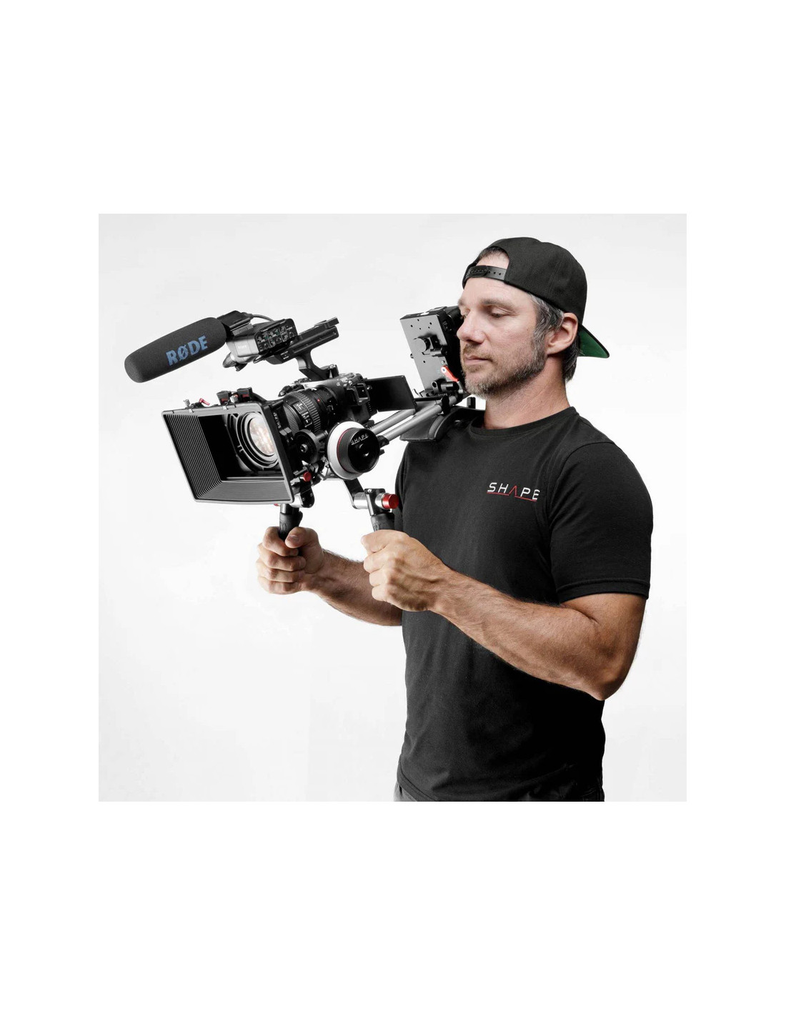 It includes a CNC aluminum single-sided cage with multiple mounting points and an ARRI rosette, an ergonomic mini top plate compatible with Sony’s factory handle, a quick-release 15 mm LWS rod baseplate, as well as SHAPE’s single-rod Follow Focus and a 4×5.6 swing-away matte box.
