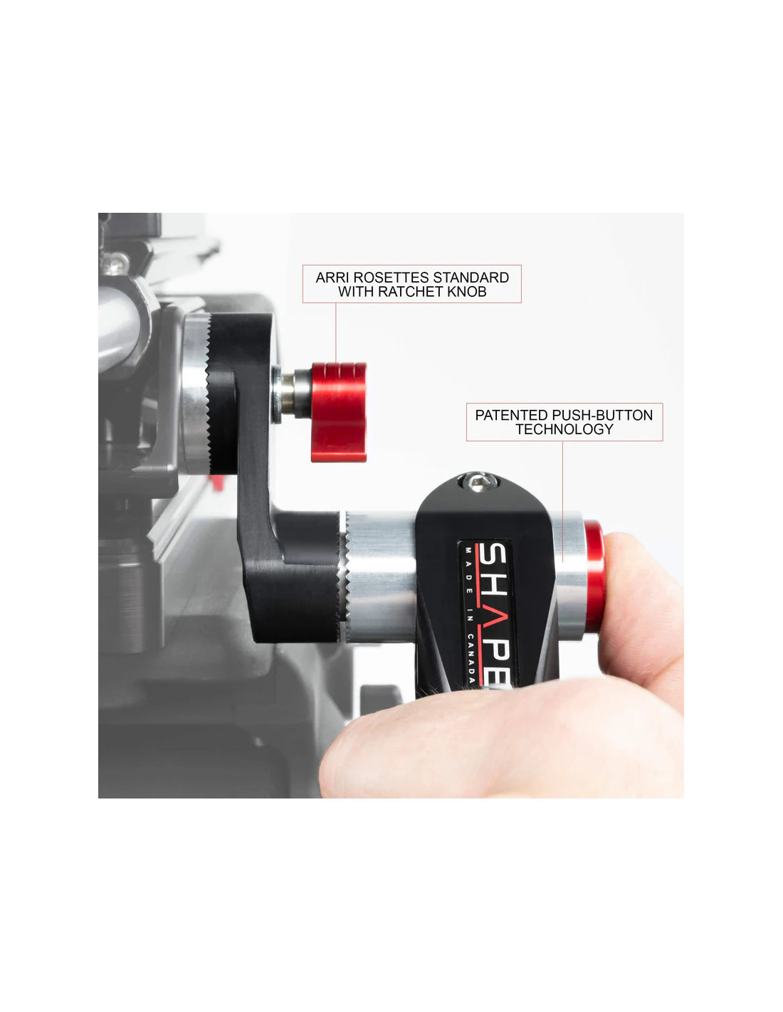 Enhance your camera rig with this SHAPE kit featuring two telescopic handles with ARRI rosettes and a 15–19 mm rod bloc.
