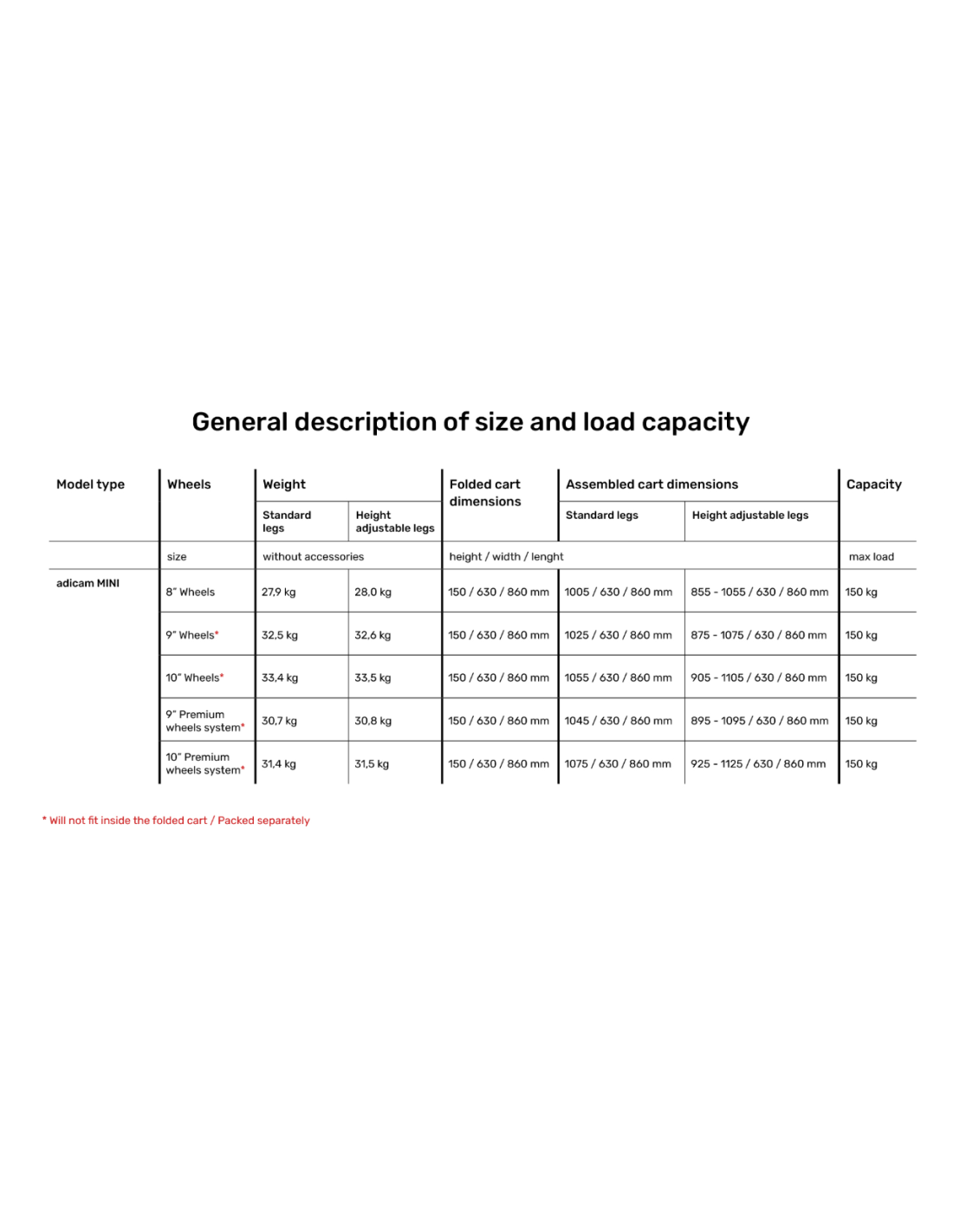 The MINI is also compatible with a wide range of adicam accessories, allowing you to customize your cart exactly how you need it.