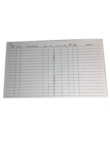 Camera Log Book - 10.5 x 12 cm, 80 pages - Available in 4 colors. Perfect for recording technical details of each shot. Compact size, English content.