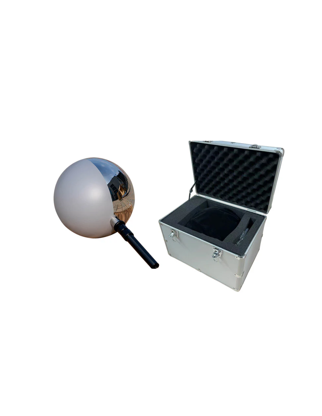 The 25 cm VFX Ball Half Mirror / Half Grey is an essential reference tool for VFX supervisors, lighting crews and post-production artists. It combines two functions in a single sphere: a chrome mirror side for capturing 360° HDRI environment maps, and a 50% grey painted side with 18% reflectivity that serves as a reliable reference for light direction, intensity, colour temperature and shadow behaviour.