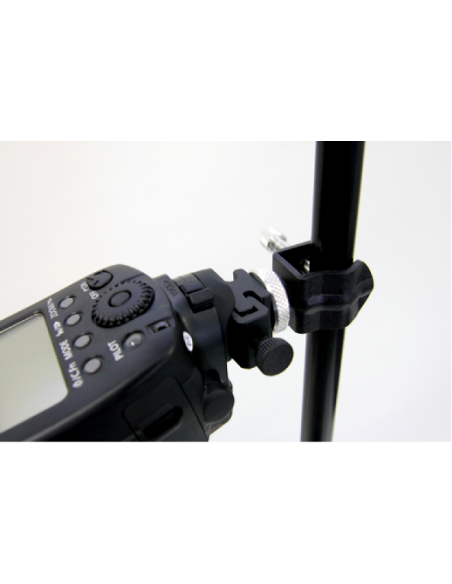 The Kupo Micro Clamp KCP330 is a small clamping device designed to securely hold camera or lighting accessories weighing up to 50 pounds. Measuring only 1 inch long and 1 inch wide, the Kupo Micro Clamp features a steel jaw with rubber inserts to protect equipment surfaces. It is easy to use with its ratchet handle and stainless steel locking screw. The Kupo Micro Clamp can be attached to tubes from 5 to 32 mm in diameter and is an indispensable tool for AV and photography professionals.