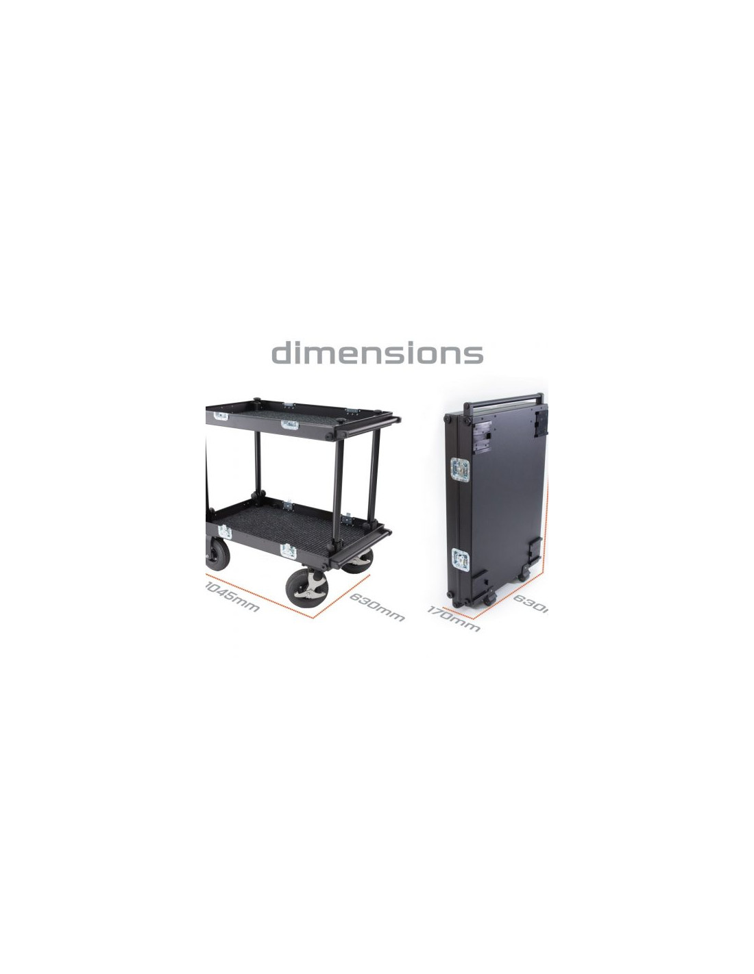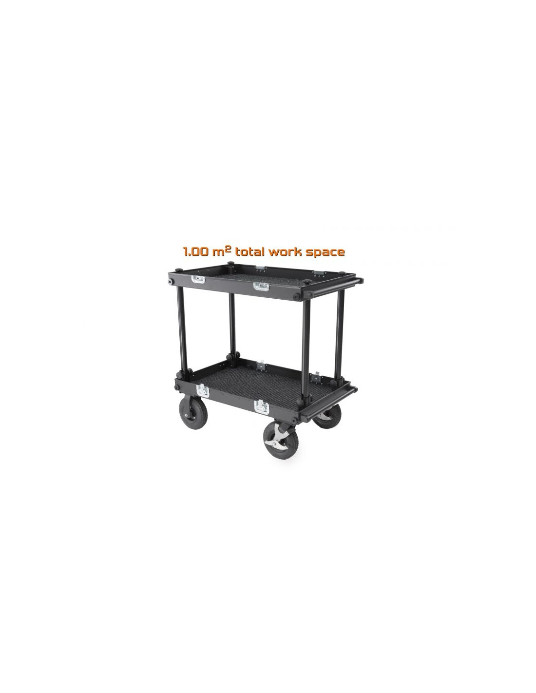 The Smartone by Filmcart is a lightweight, durable, and compact cart made for transporting gear or setting up a mobile workstation on set. Built from anodized aluminum, it supports up to 200 kg across two platforms and is equipped with 4-layer pneumatic tires on steel rims, featuring manual foot brakes with force regulation for safe handling.