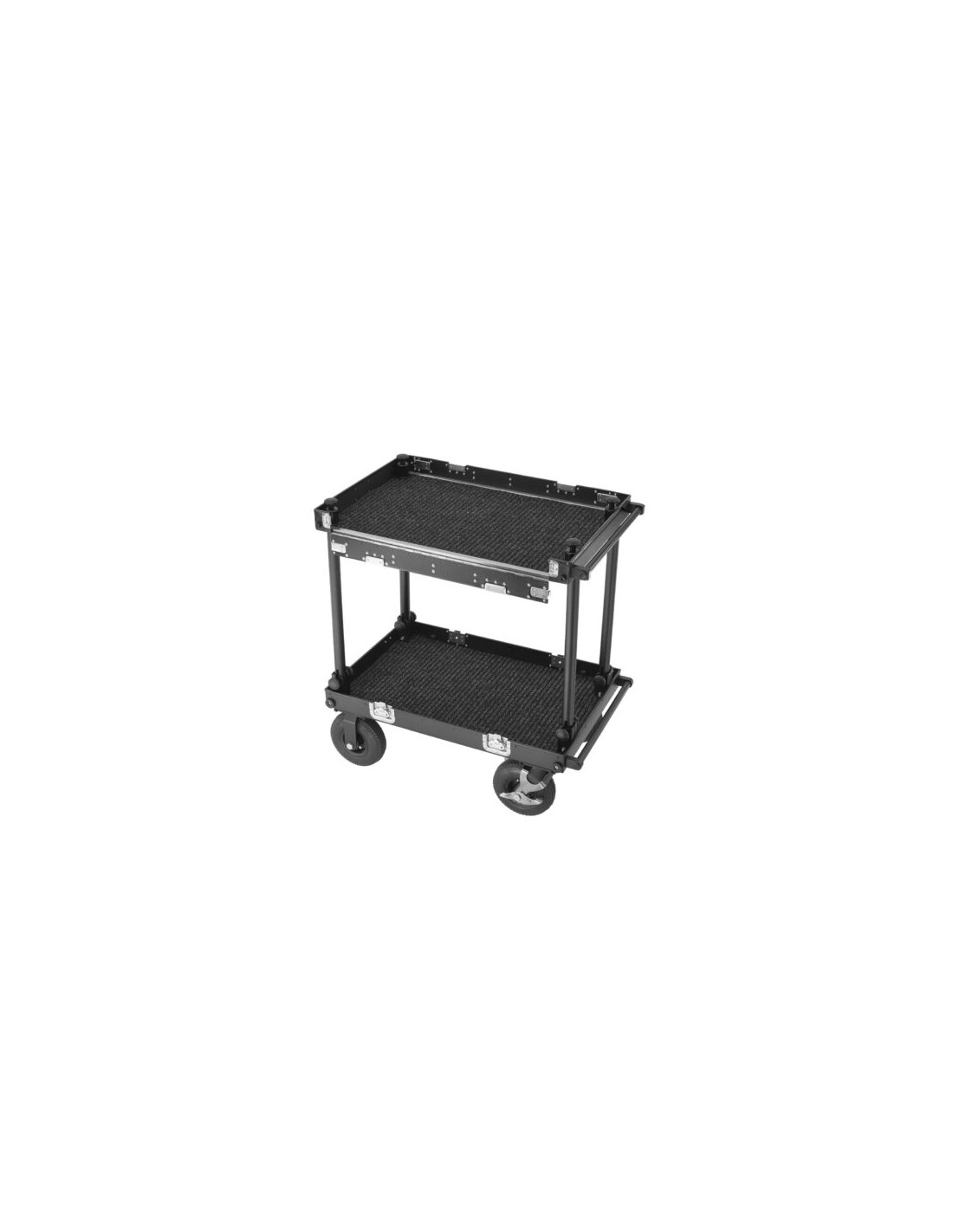 The Filmcart Smartone Mini – Double Plus is engineered for maximum comfort and flexibility on set. With two collapsible top shelf walls, it allows both secure gear handling during transport and full, flat workspace access when deployed—perfect for laptops, mixers, or field monitors.