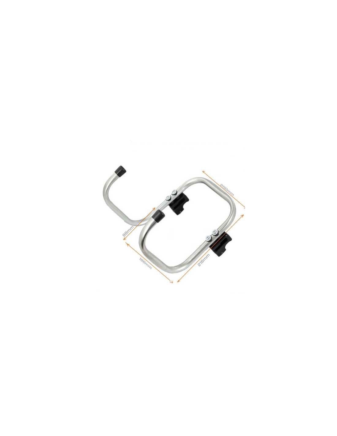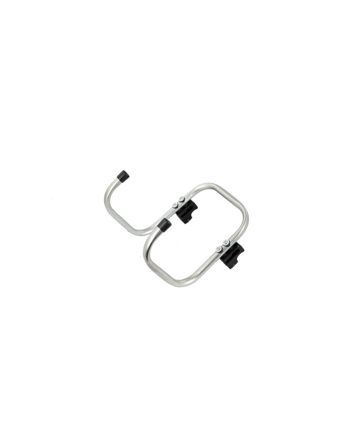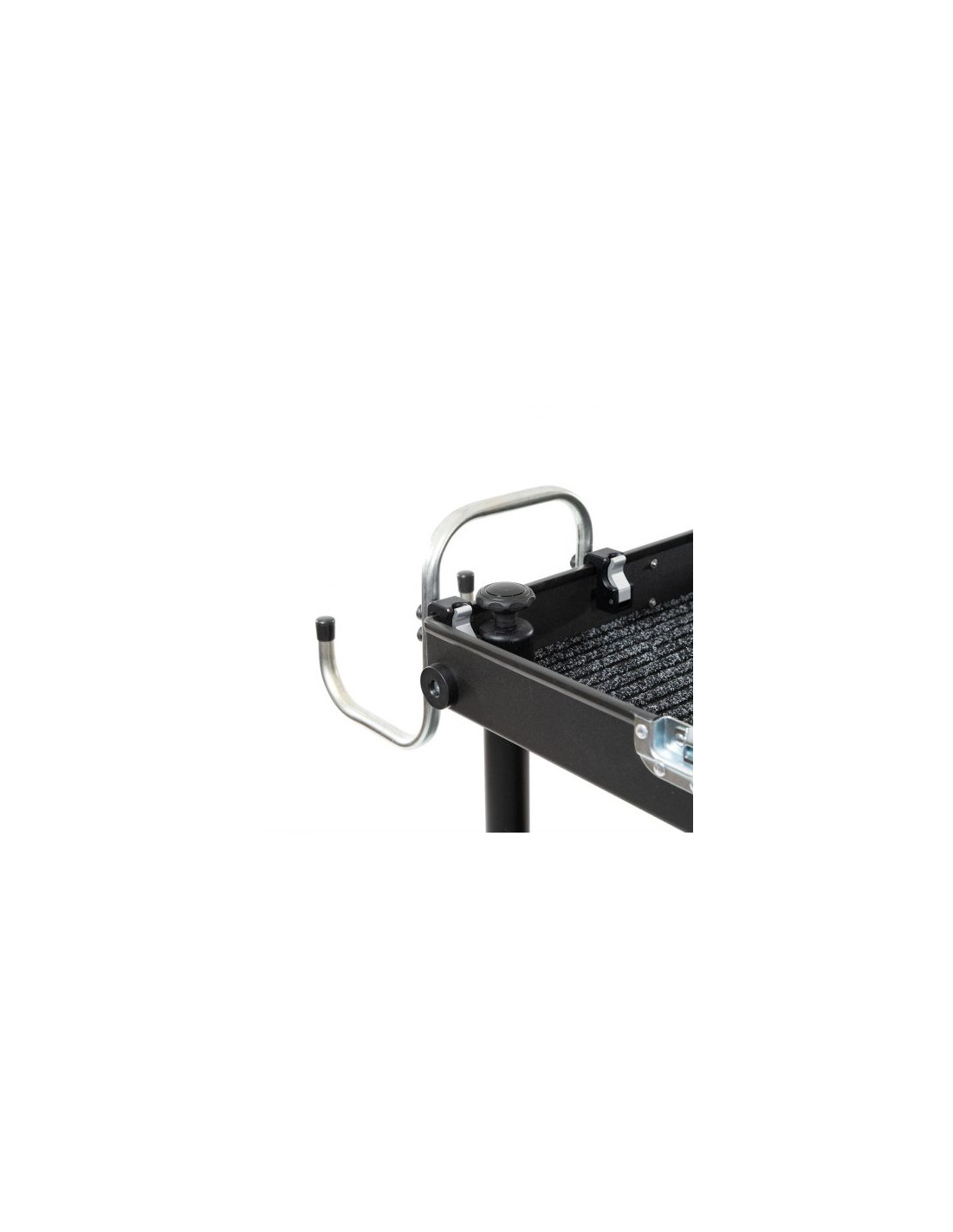 The Steel Double Hook (Wider Space) with 2 quick clamps is a professional accessory for hanging bulkier items like cable spools, bags, or power strips on your Smartone or Smartone XL camera cart.