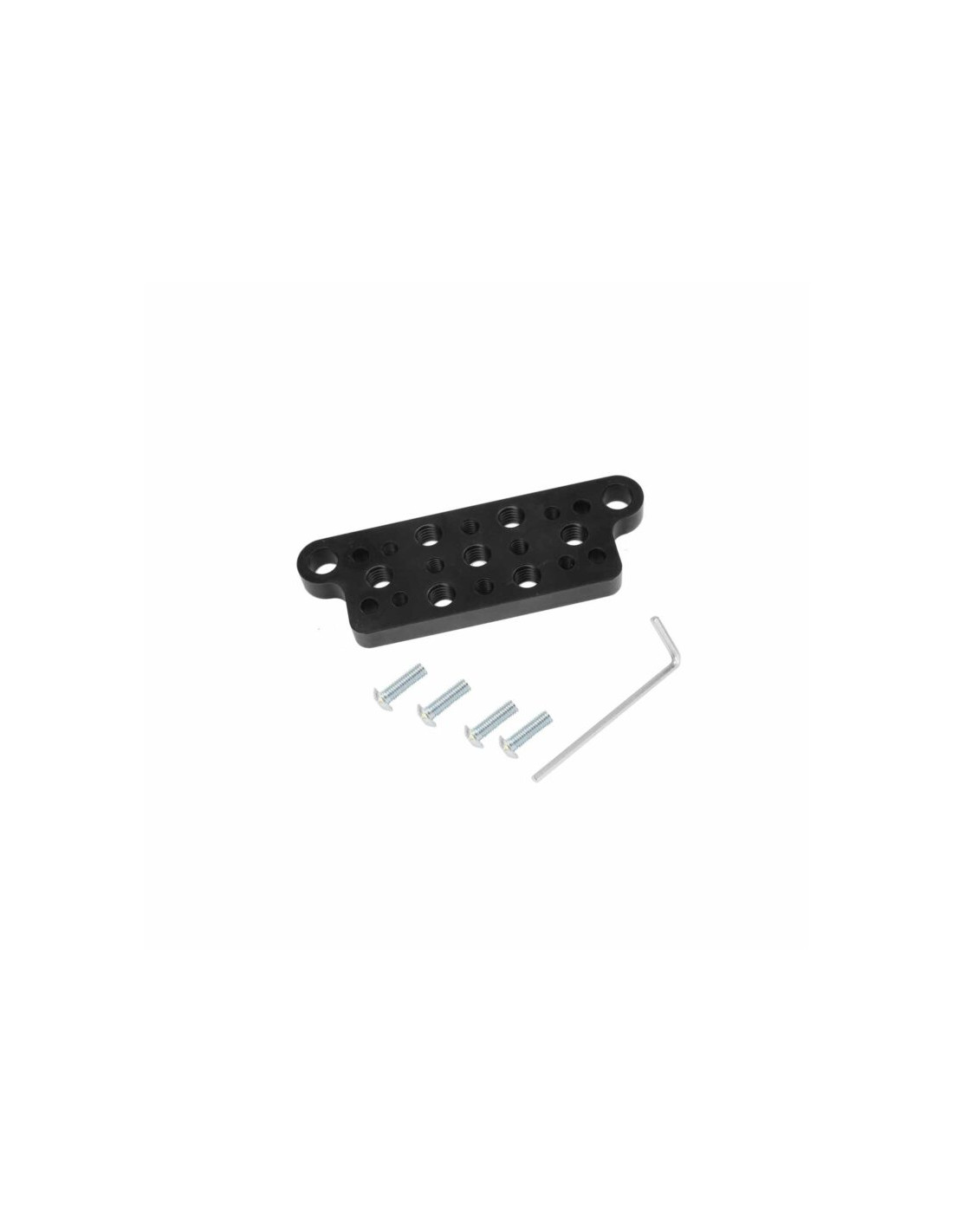 Designed for use on crossbars, carts, or structural panels, this plate allows for custom rigging solutions in a mobile or studio environment. Made of durable aluminum, it balances strength and lightness for professional use.