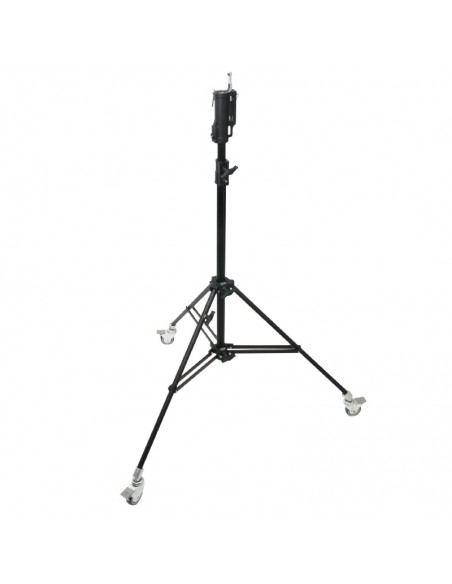 Featuring a 2-section column with an adjustable height range from 112 to 230 cm, it supports loads up to 30 kg, making it ideal for lighting fixtures, grip gear, or heavy equipment. The integrated leveling leg ensures perfect positioning on uneven or sloped surfaces, while the spring-cushioned riser protects equipment from sudden drops if the locking collar is loosened. With its 118 cm footprint, it offers excellent stability and is compatible with optional KC-080R casters for enhanced mobility.