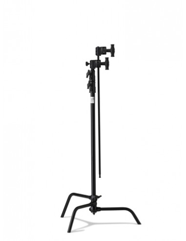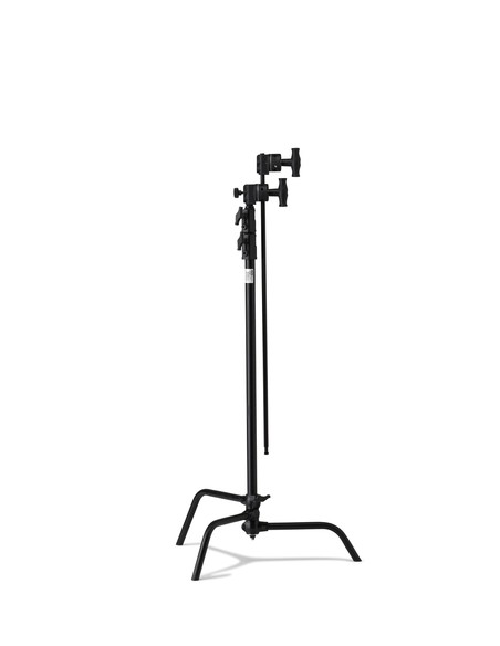 The Kupo Master C-Stand 40" kit with 100 cm extension arm and black grip head is built for maximum stability and adaptability on set. Its sliding-leg design features two spring-loaded fixed legs for secure positioning and one adjustable leg for use on uneven ground. The 40" extension arm includes a 2.5" aluminum grip head with a hexagonal stud to keep lighting fixtures safely in place.