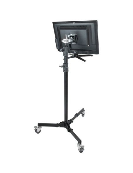 The height-adjustable screen placement allows for ergonomic viewing from a seat height to standing eye-level