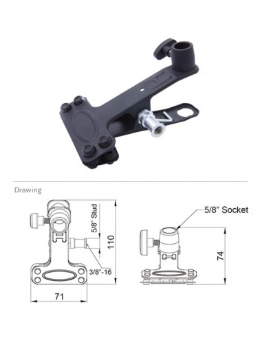 The KUPO KCP360B GM Spring Clamp is a versatile steel clamp designed for secure mounting of studio and set accessories. It features three attachment methods: a spring-loaded clamp with rubber feet (clamping range 5-40 mm), a 5/8" female socket, and a 5/8" stud. This ensures full compatibility with lighting stands, Convi Clamps, Super Viser clamps, or Grip Heads. Perfect for holding reflectors, gels, foam cores, or flash units both in studio and on location.