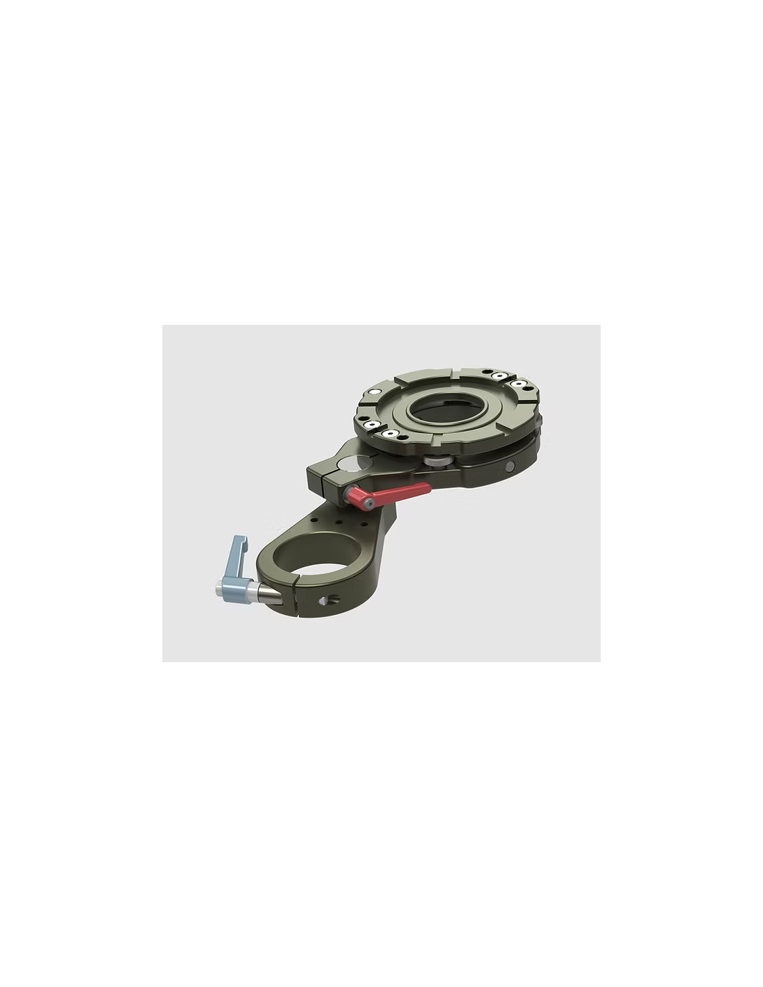 4-way eccentric adapter converting Euro mounts to Mitchell standards, offering flexible positioning for professional camera setups.