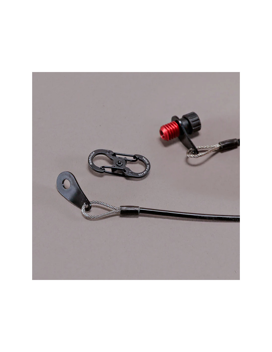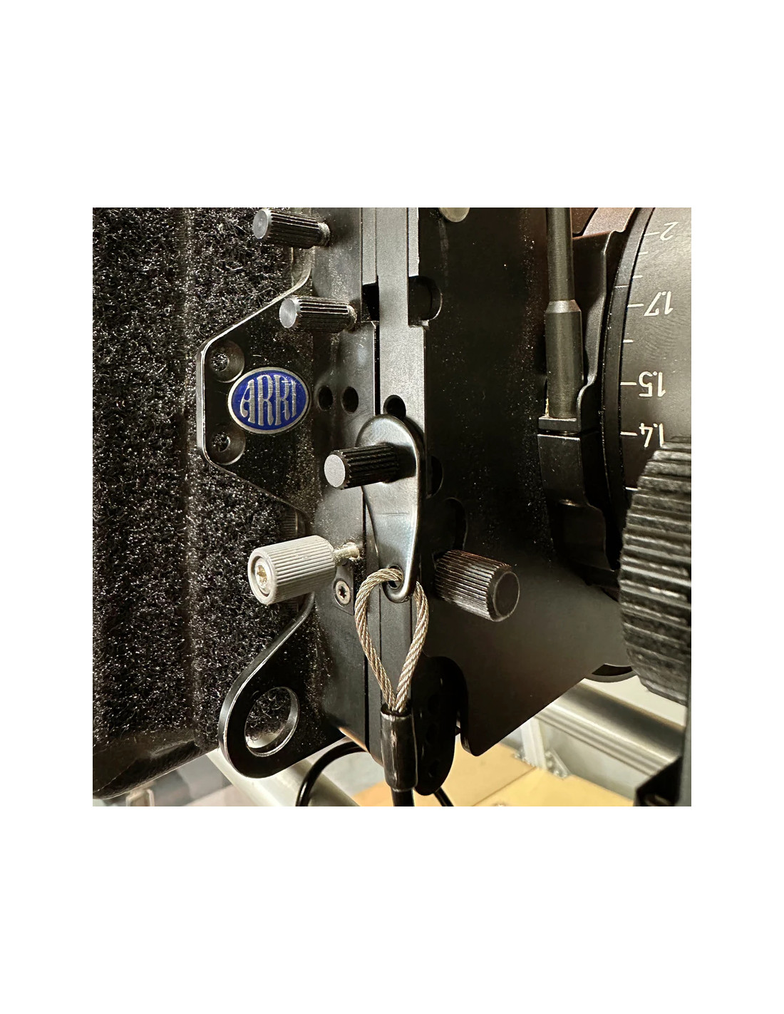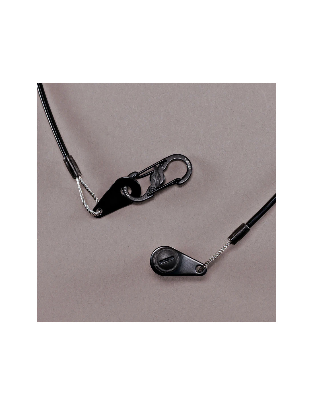 The 560 mm black stainless steel safety wire includes a 3/8" male thread, a red anodized aluminum end cap, and a plastic knob for quick handling. Designed to tether a mattebox securely to your rig, it provides extra protection against accidental detachment. The included carabiner allows easy attachment to cages, handles, or grip systems.
