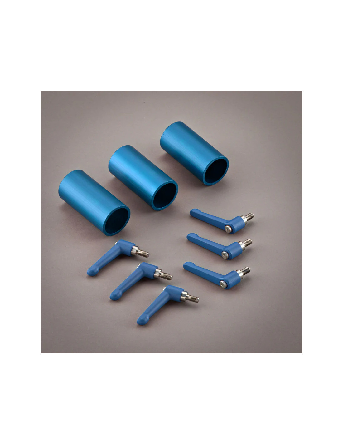 The tubes are made from high-strength aluminium alloy, providing an excellent balance of rigidity and light weight. The blue anodized finish increases durability and visual identification. The M8 stainless steel clamping levers are also blue anodized for a cohesive, high-end look and feature ergonomic tightening for quick and secure adjustments.