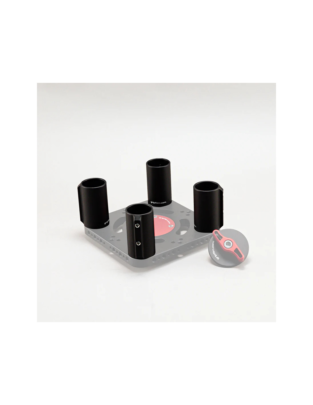Featuring 8 black anodized aluminum receivers for 48.3 mm (1"1/2) speed rail, this riser system allows quick height adjustment and robust locking. It includes stainless steel bolts, grub screws, 3/8" eye bolts for strap anchoring, and a 25 mm x 5000 mm ratchet strap. With M5 anti-twist design and pro-grade hardware, it's perfect for dynamic Mitchell platform elevation in demanding film environments.