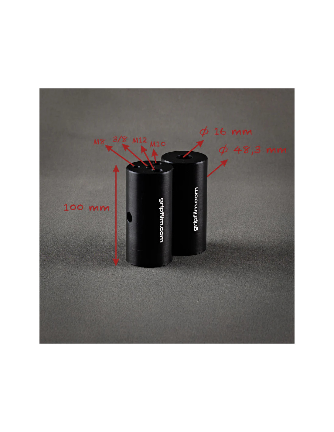 The 48.3 mm (1"1/2) Multi Starter Pin Set provides a versatile and rugged solution for grip technicians working with large-format rigs and modular support systems. Each pin includes a central 16 mm (5/8") receiver and multiple female threads (3/8", M8, M10, M12), offering seamless integration with a wide array of accessories.