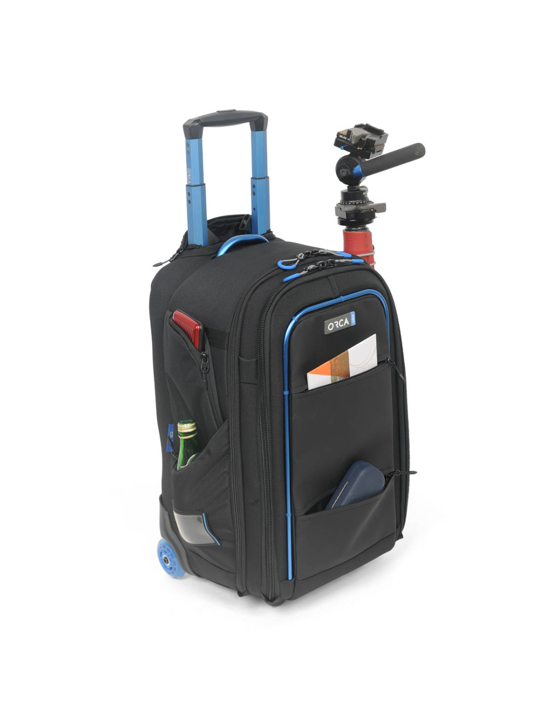 The ORCA OR-26 Trolley Backpack was designed to carry heavy gear safely and efficiently to filming locations. It features a built-in heavy-duty trolley system with reinforced wheels combined with a padded backpack system using EVA foam and breathable mesh for maximum comfort and ventilation.