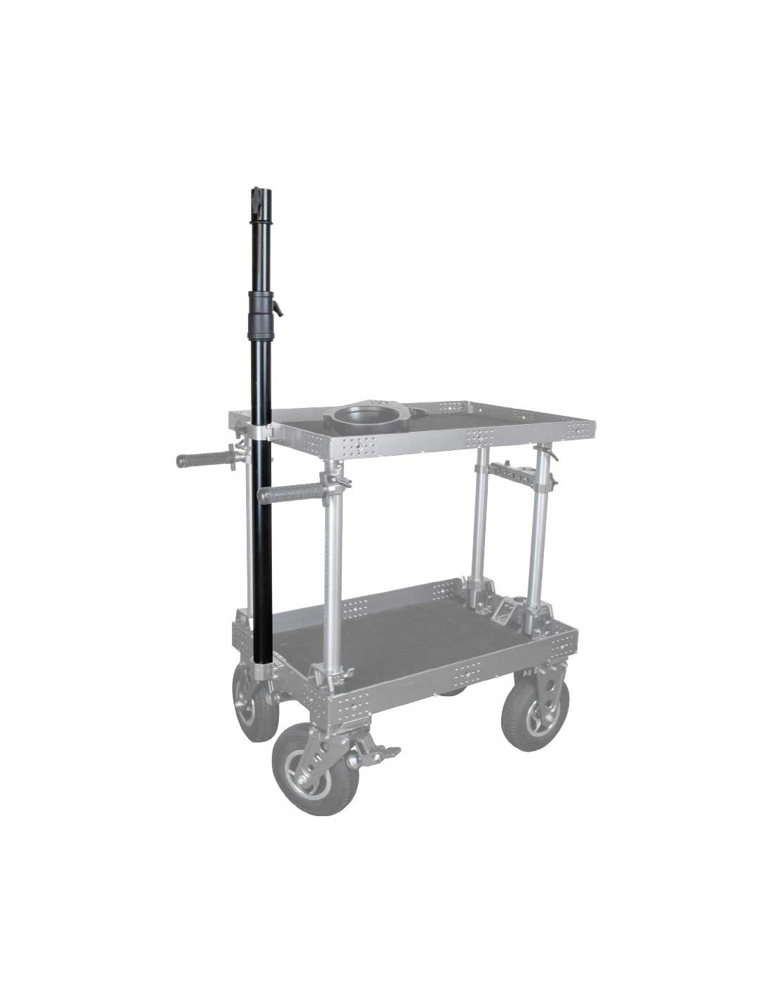Compatible with standard 2" couplers or clamps fitting 40 mm tubing, this mast integrates seamlessly with camera carts or professional grip setups.