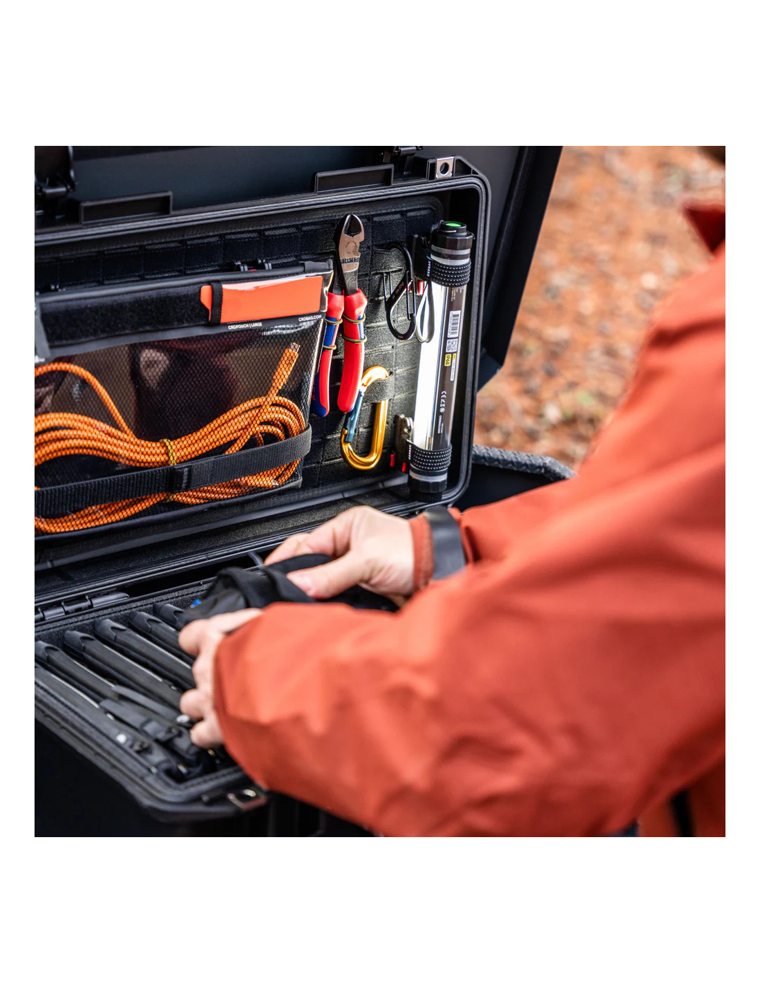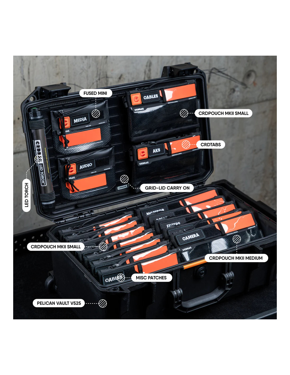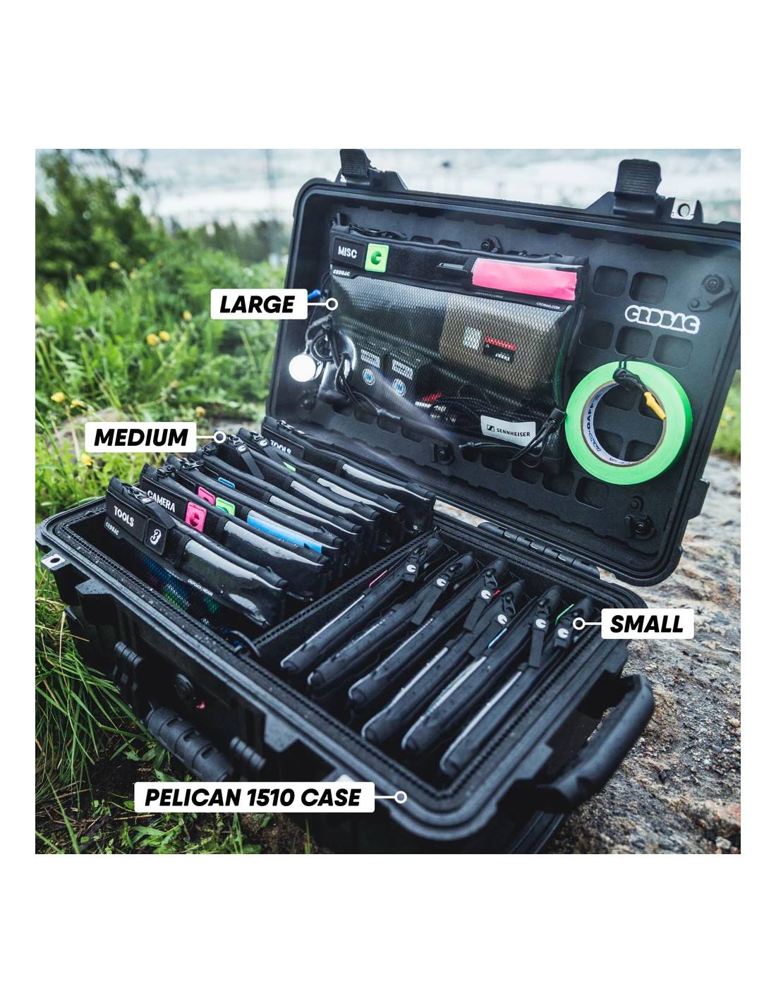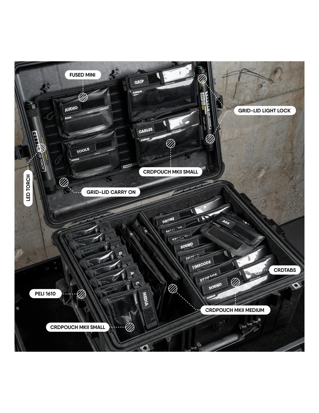 The CRDPOUCH sets a new standard in gear organization for filmmakers and technicians. Built with rugged materials and a seamless finish, it features a clear TPU mesh window for labeling, MOLLE/PALS webbing, and a front Velcro panel for customization.