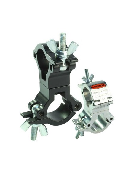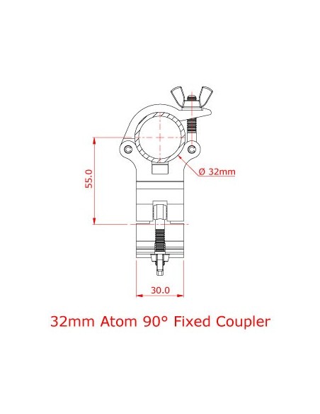 The Doughty 32 mm 90° Fixed Coupler ensures a reliable connection between two perpendicular bars. Manufactured from high tensile aluminium extrusion, it offers a robust and lightweight solution for rigging, trussing, and staging applications. This clamp is compatible with 32 mm diameter tubes and supports a Safe Working Load of 100 kg. Also available in 25 mm and 38 mm versions, the 90° coupler guarantees stability and precision where structural angles are essential.