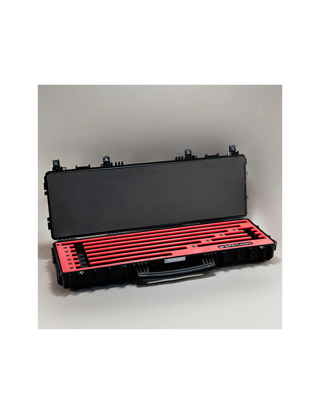 Built with laser-cut foam inserts, this rugged case offers individual slots for 10 rods per size, covering the full range from 100 mm (4") to 1100 mm (44"). Each compartment is clearly labeled for fast identification. Designed for precision and protection, the case is delivered without rods, making it ideal as a spare or additional unit for existing sets. Perfect for professionals needing a compact, transportable, and organized rigging solution.