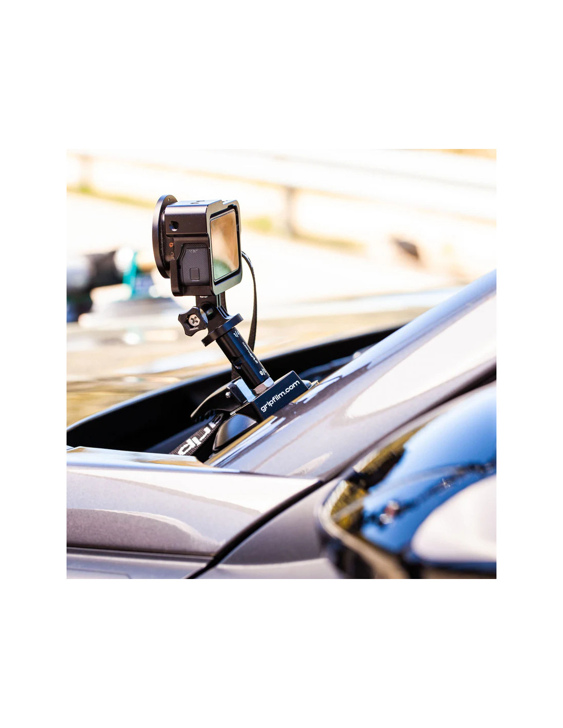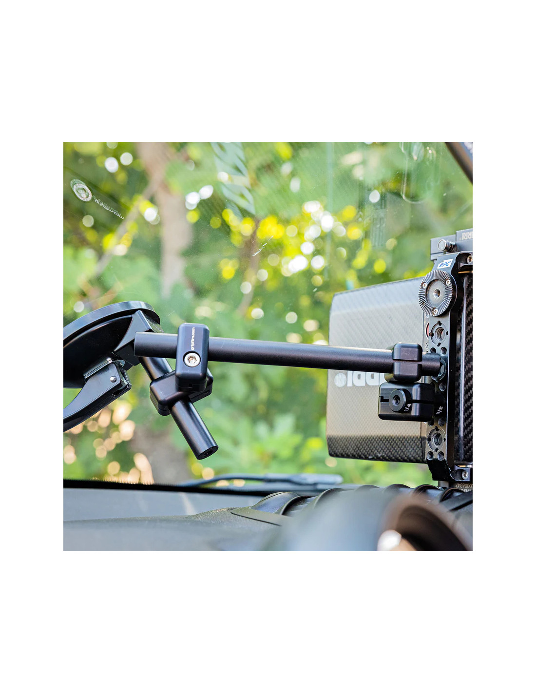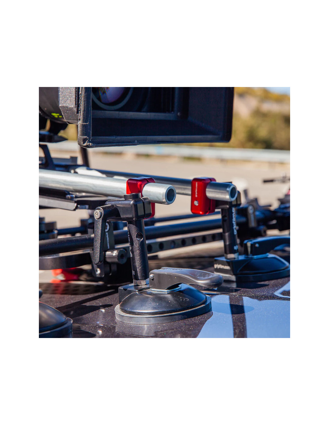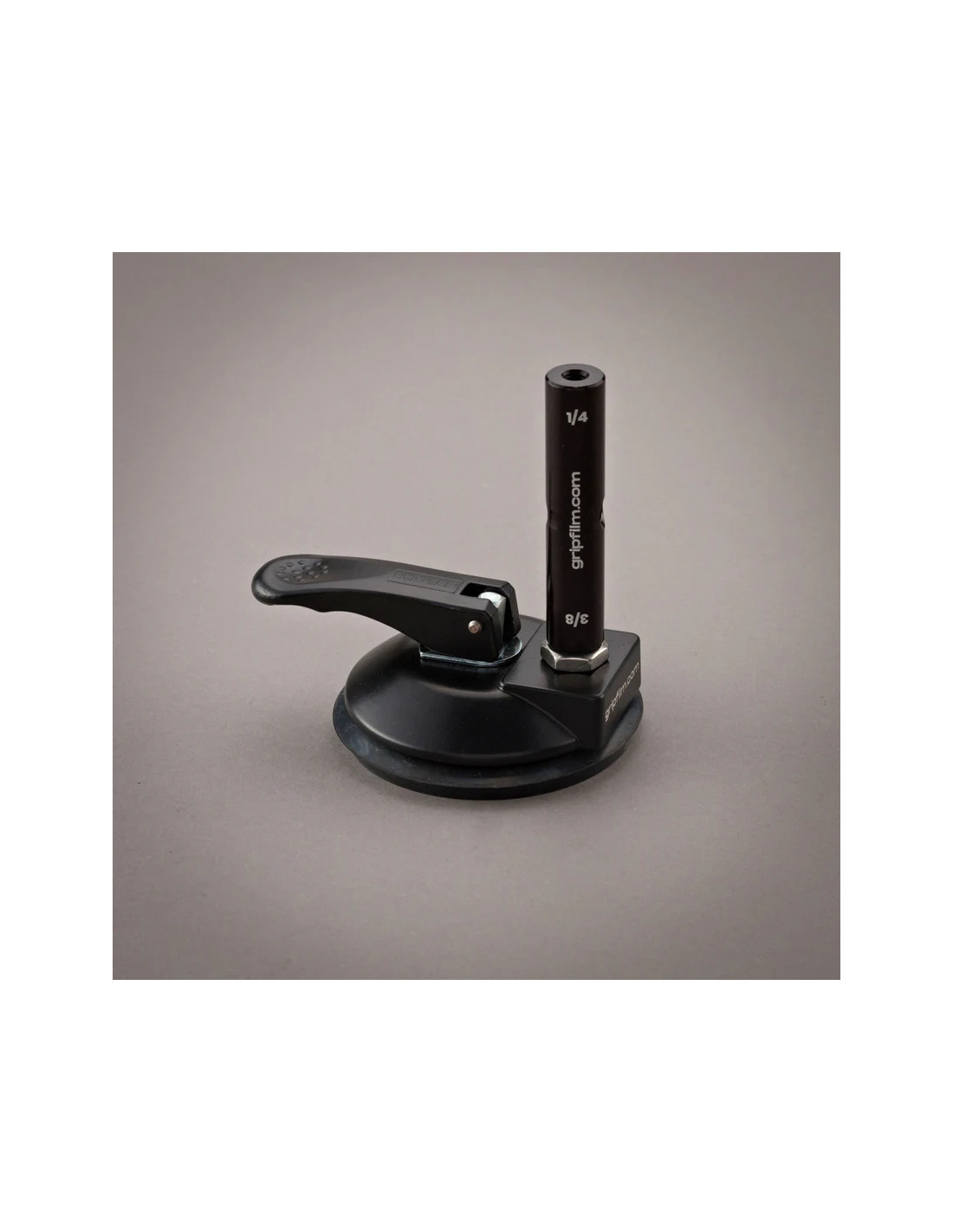 The 90 mm (3"1/2) suction cup features an 80 mm long 16 mm (5/8") starter pin with a 3/8" male thread. Made from black anodized aluminum and stainless steel, it supports up to 7.3 kg (16.1 lbs) under ideal static conditions. It’s perfect for lightweight mounting in tight spaces. Always store in resting position (not activated).