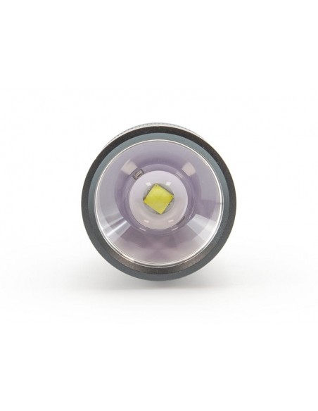 Featuring an external USB charging base and two Li-ion 26650 (5000 mAh) batteries, it allows you to charge one battery while using the other. The focus lock function prevents accidental beam adjustment, while the progressive electronic dimmer provides precise light control.