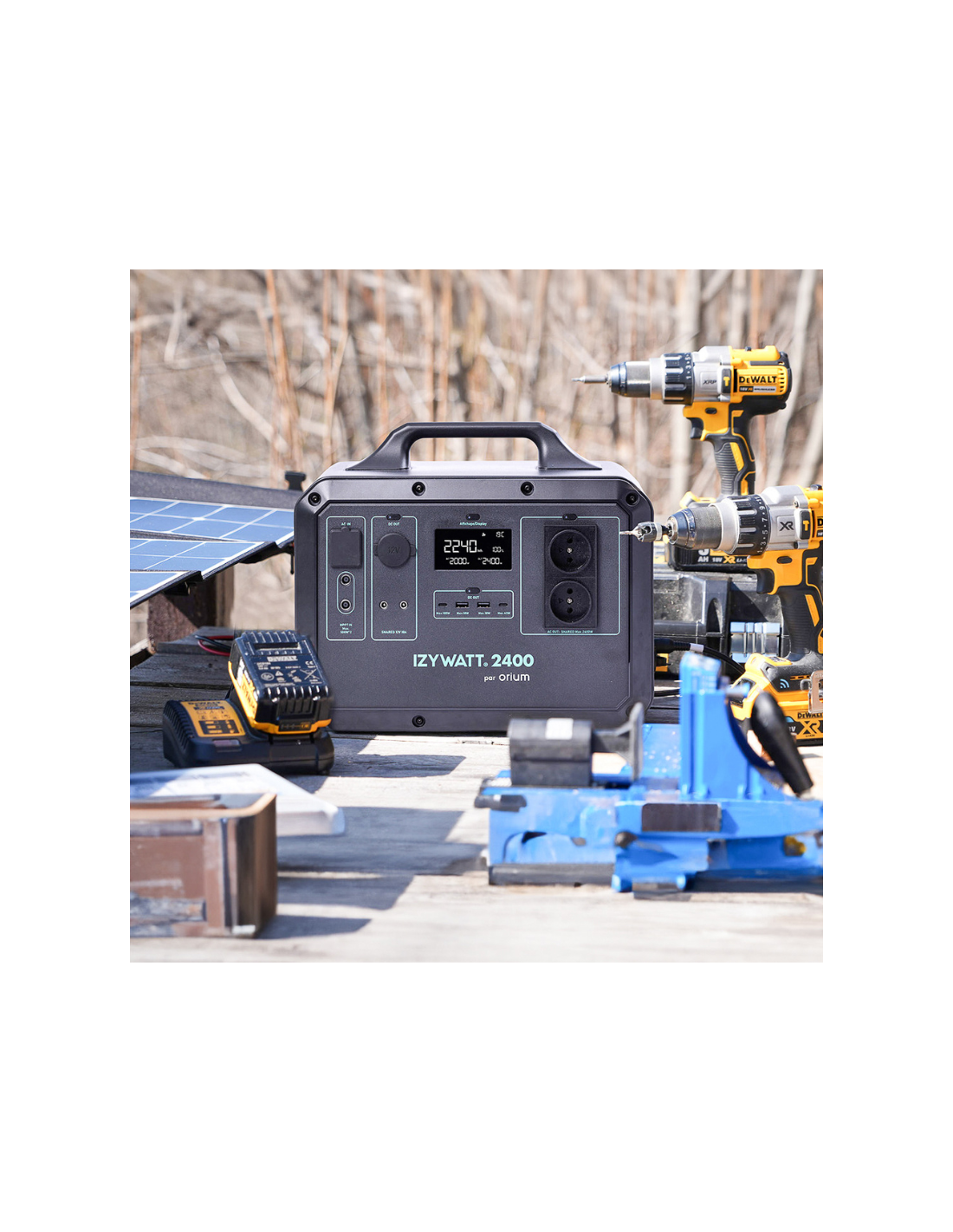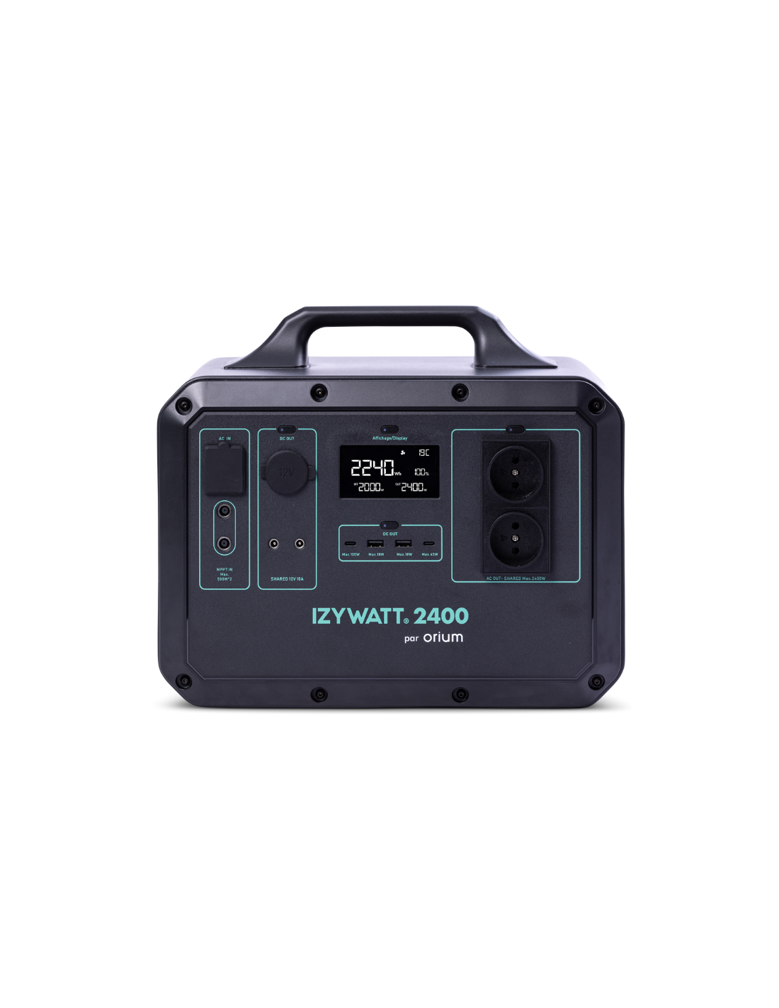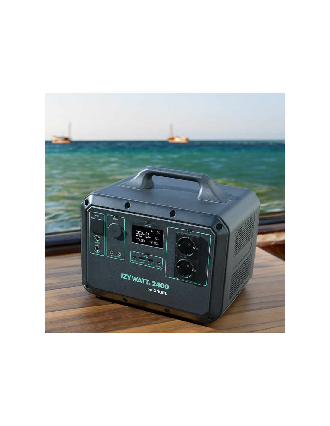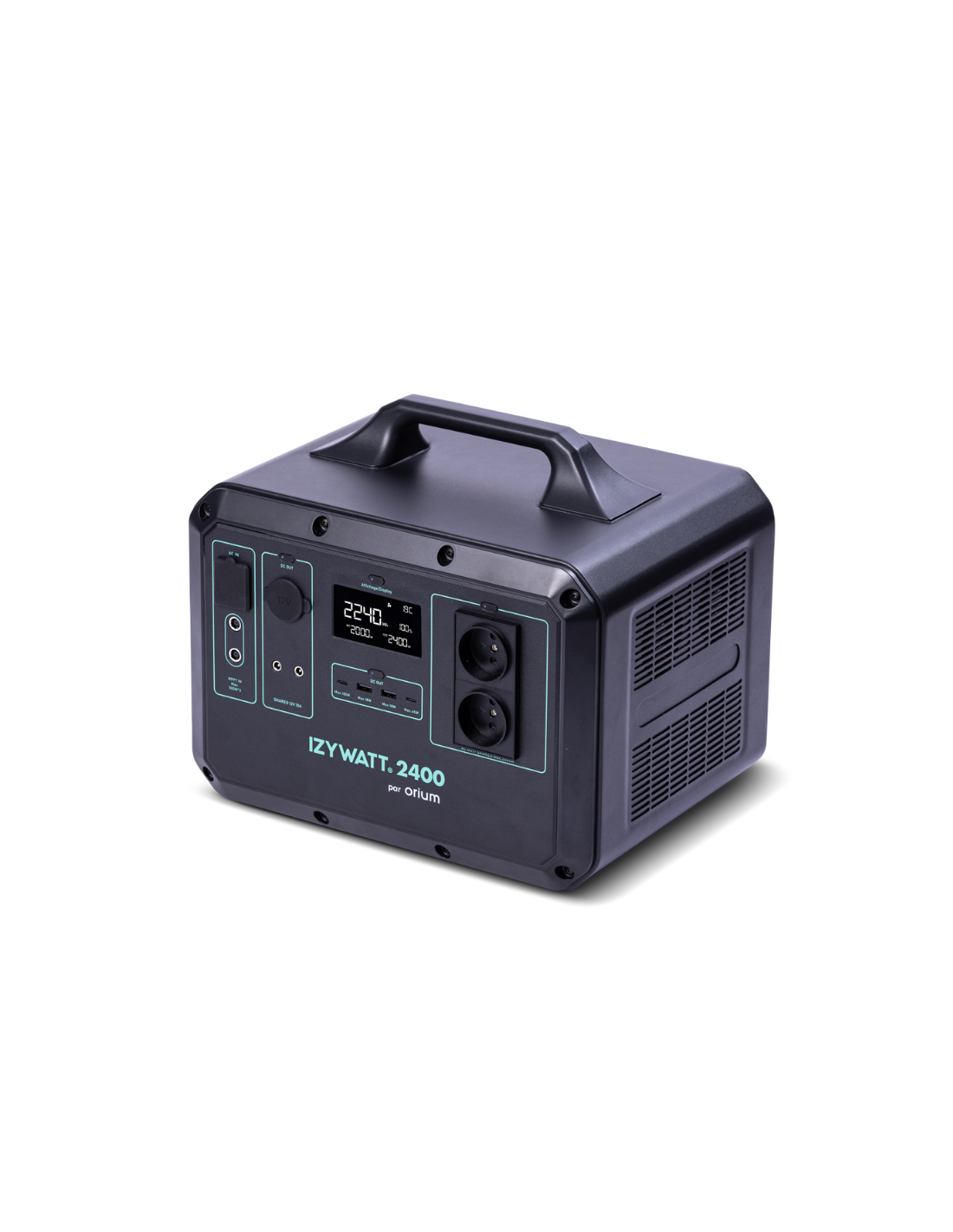 Caractéristiques principales Capacité : 2400 Wh Puissance maximale : 2,2 kW Sortie onduleur à onde pure Recharge secteur, solaire ou 12V Format compact et transportable Résumé des caractéristiques Type : Bloc énergie portable Capacité : 2400 Wh Puissance max : 2,2 kW Usage : Tournages prolongés, studio mobile, matériel sensible Avantages : Haute capacité, fiable, multi-appareils