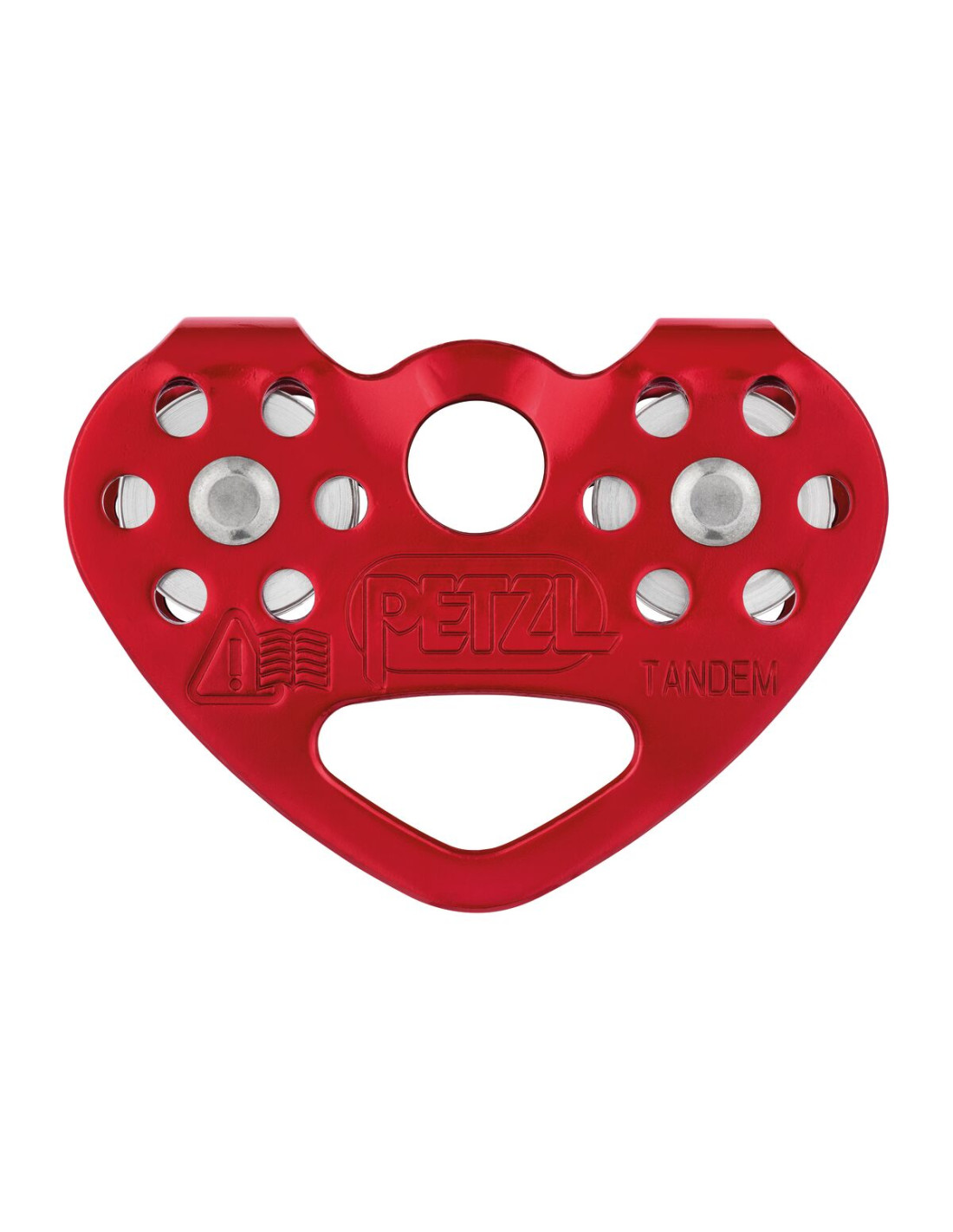 The PETZL TANDEM is a double aluminum pulley designed for rope zip lines and efficient movement along lines or anchors. The self-lubricating bushings provide smooth rotation and a 71% efficiency rate, ensuring consistent performance under load.