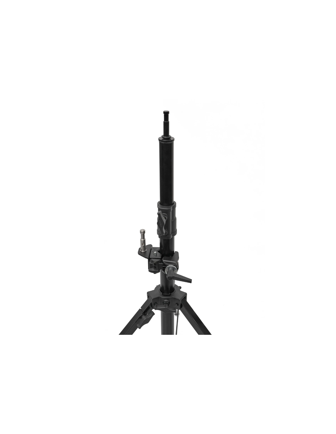 Fabriqué en aluminium et acier inoxydable, ce support offre une excellente robustesse tout en restant léger. Il est équipé d’un spigot vertical de type baby pin (16 mm) compatible avec la majorité des bras articulés, ombrelles, supports de lumière ou accessoires standards du marché.