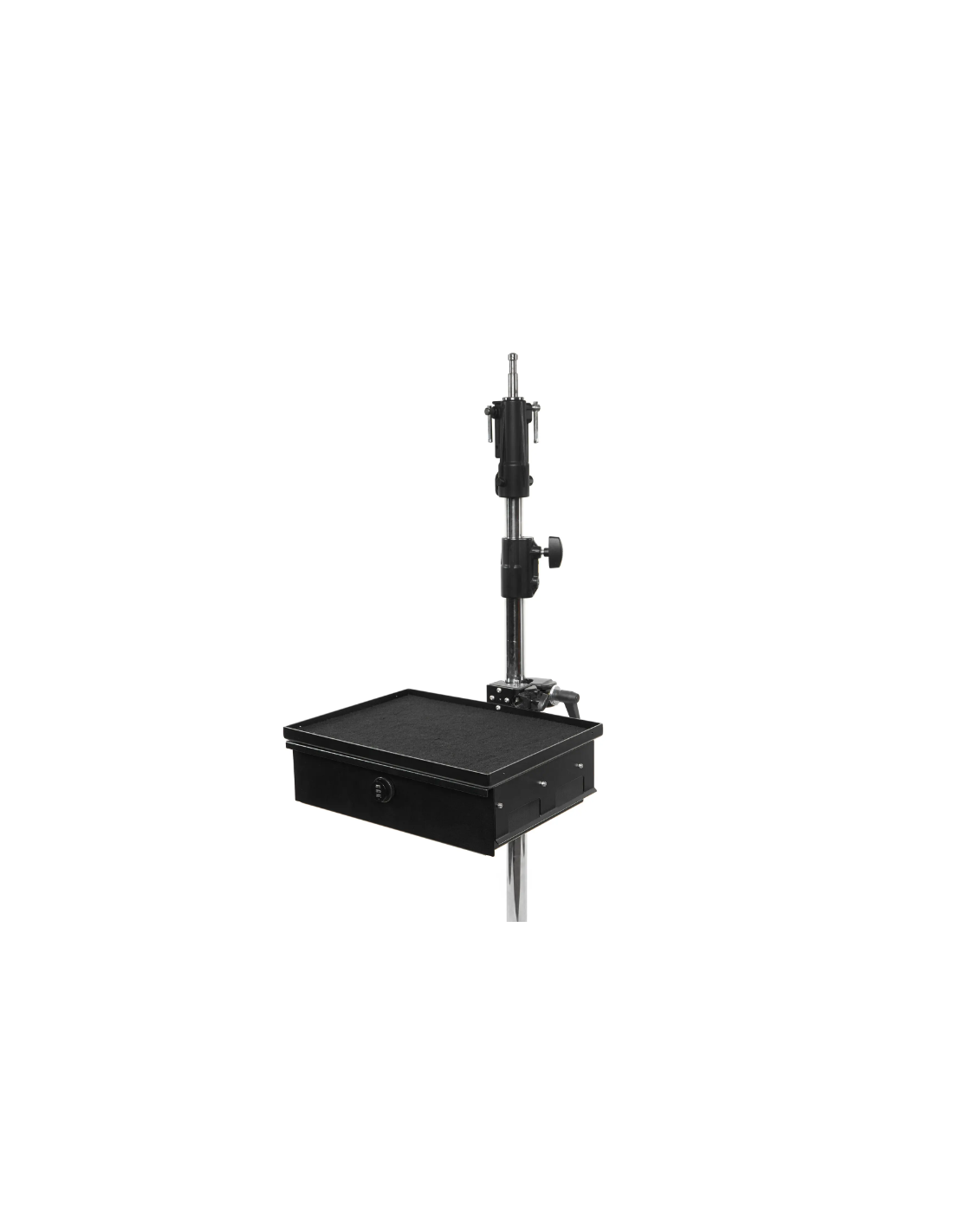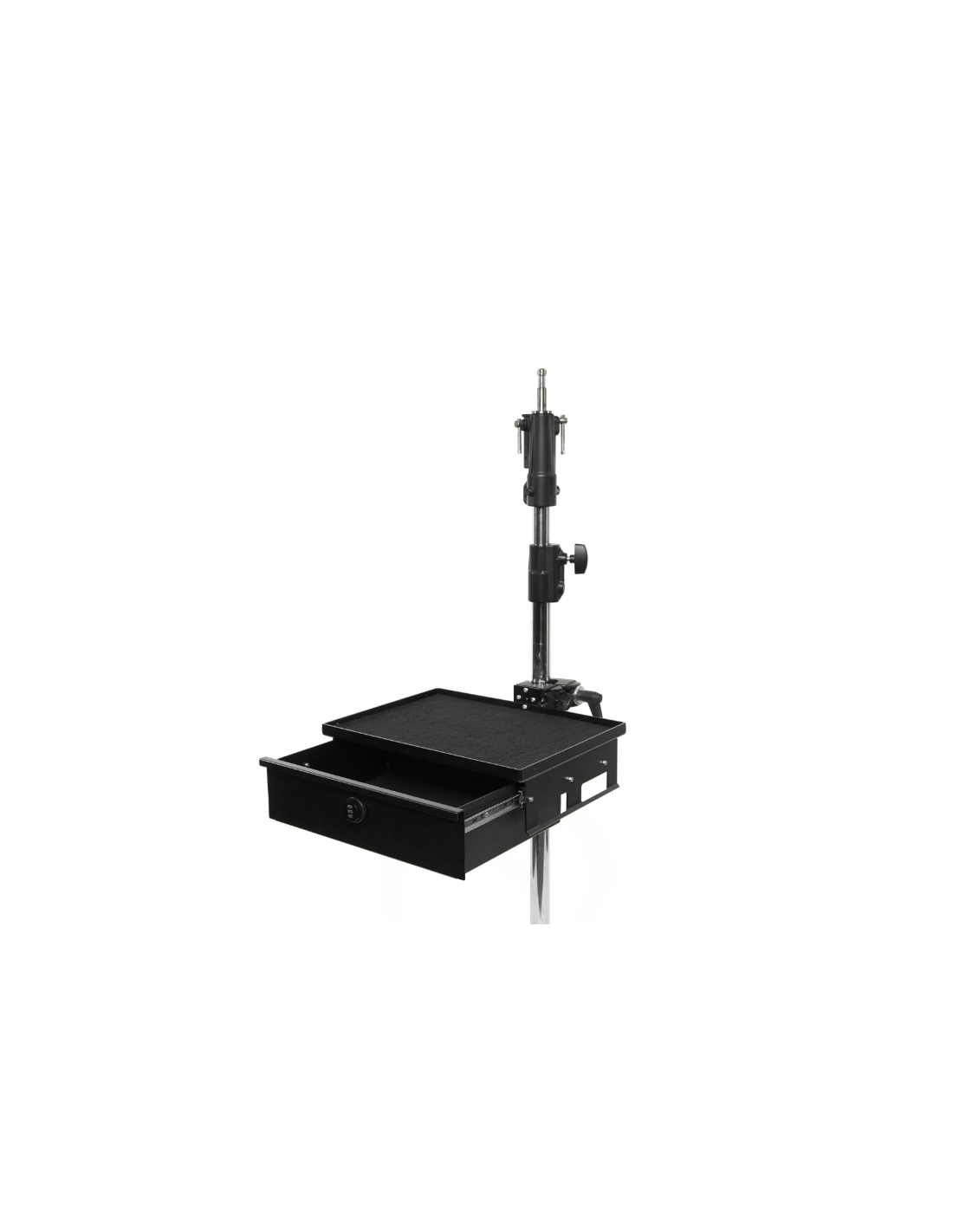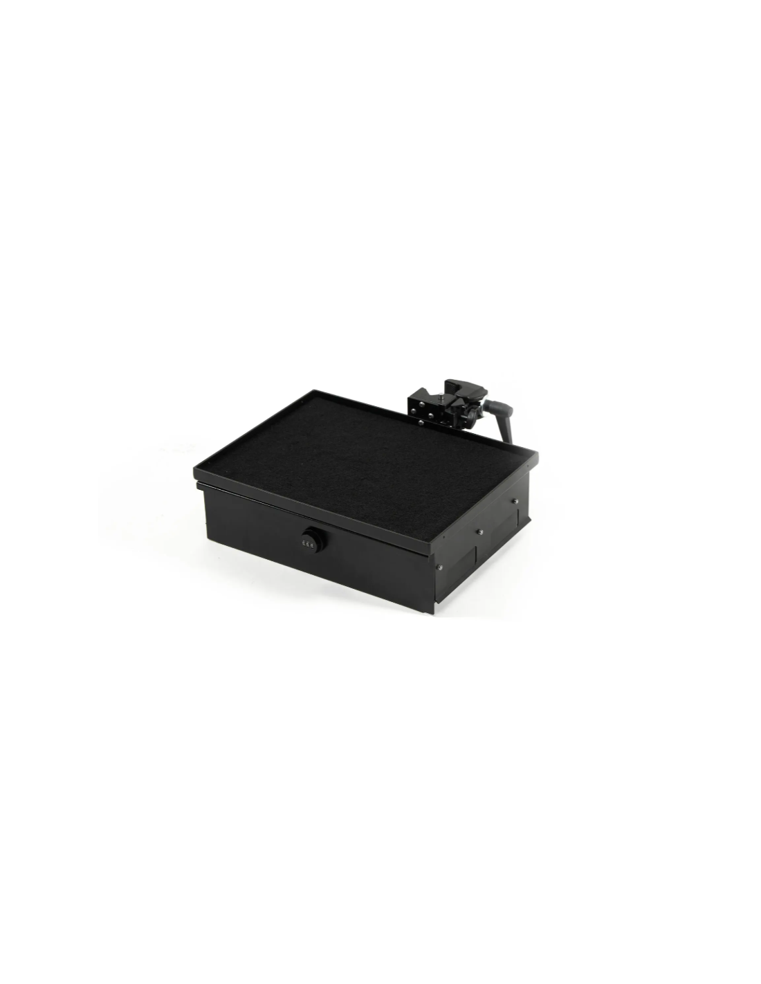 Le tiroir est doublé d’un revêtement en moquette douce qui protège le contenu des rayures et des chocs, et il est muni d’une serrure à combinaison à 3 chiffres personnalisable pour assurer la sécurité de vos équipements. Le système peut être monté sur un tube de chariot Adicam, un pied lumière ou un pied moniteur à l’aide de la Super Clamp fournie.