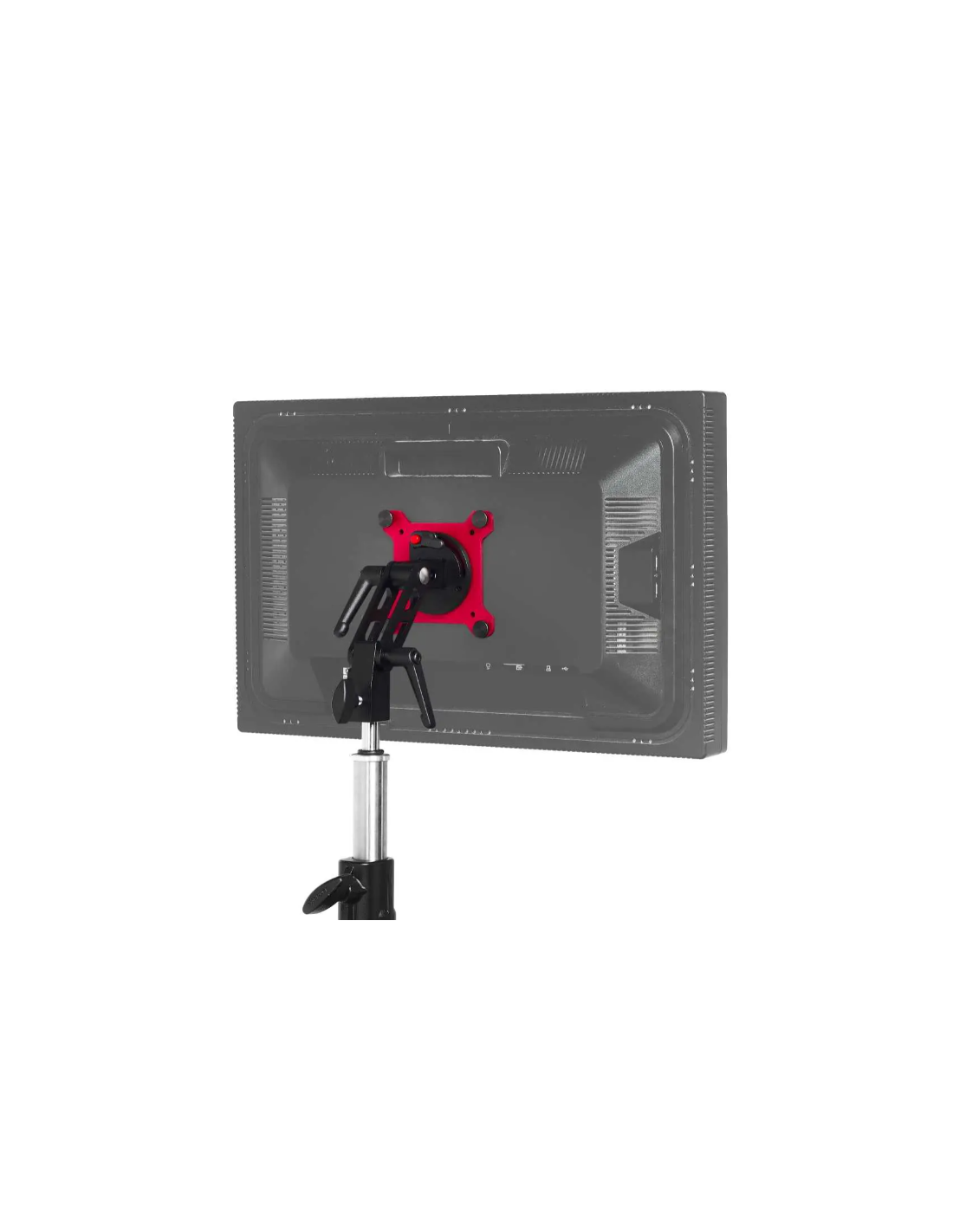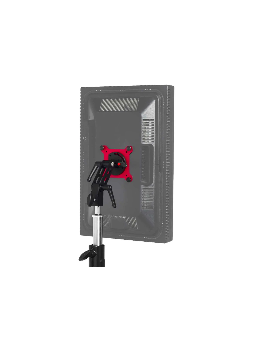 Le VESA Mount Adicam avec bascule Portrait/Paysage est un support haut de gamme conçu pour fixer solidement un moniteur sur un pied lumière, C-stand ou tout autre support équipé d’un spigot 5/8″ (16 mm). Sa plaque VESA 75/100 mm en aluminium anodisé rouge combine légèreté, robustesse et style.