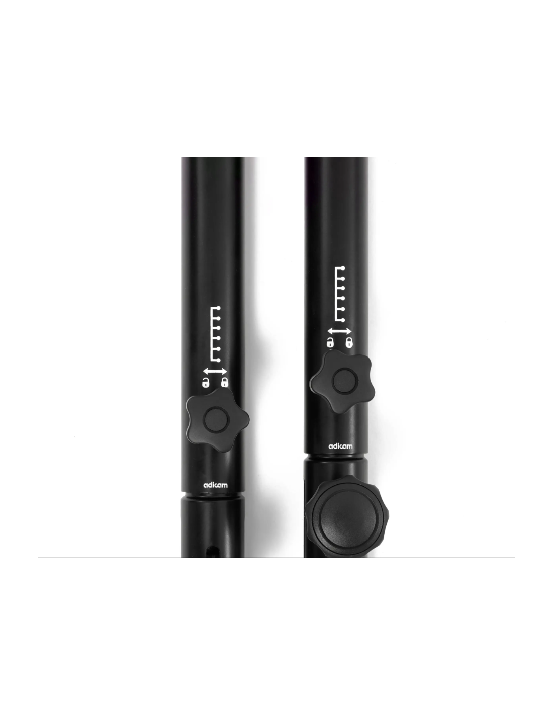 Compatible avec tous les modèles de roulantes adicam, ce système ne nécessite aucun outil pour être ajusté. Les pieds sont fabriqués en aluminium, garantissant à la fois légèreté, solidité et durabilité, même dans les environnements de tournage les plus exigeants.