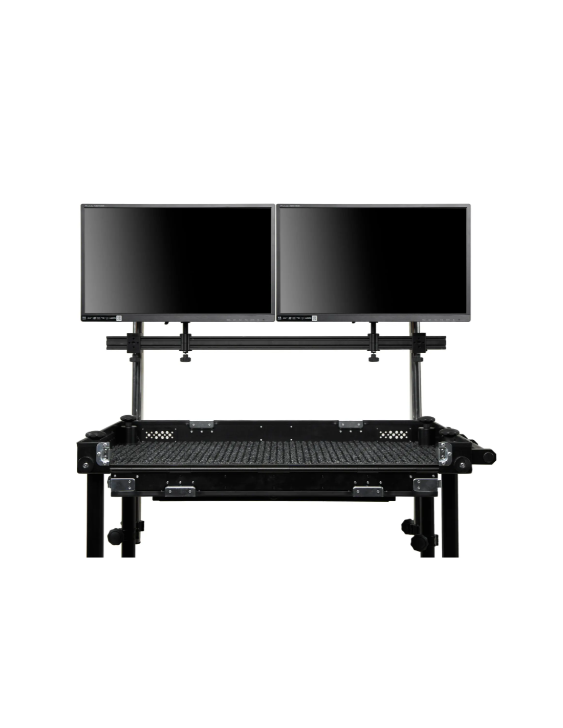 Le Monitor Mount System adicam est la solution idéale pour fixer jusqu’à quatre moniteurs sur votre roulante, transformant votre setup en véritable station de commande roulante. Grâce à son design modulaire, vous pouvez configurer le système avec un rail simple ou double rail, selon vos besoins de tournage.