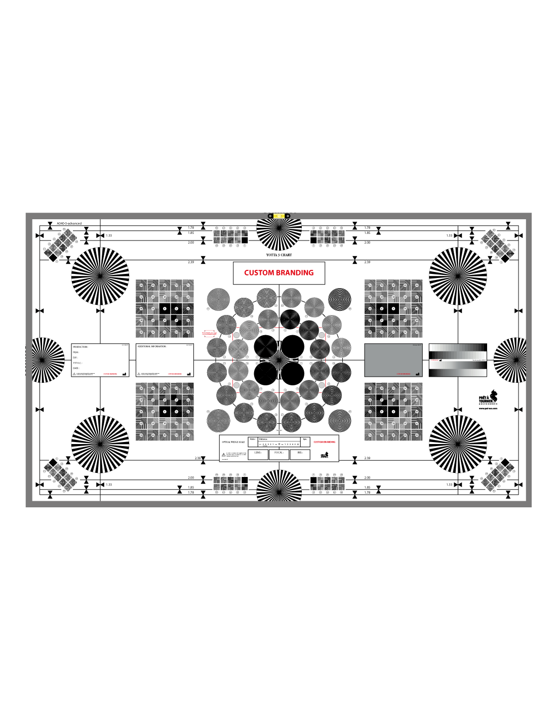 La chart YOTTA 3 Advanced, au format 92×158 cm, bénéficie d’une très haute définition d’impression de 5 paires de lignes/mm permettant une évaluation rigoureuse du piqué, des aberrations et de la cohérence optique.