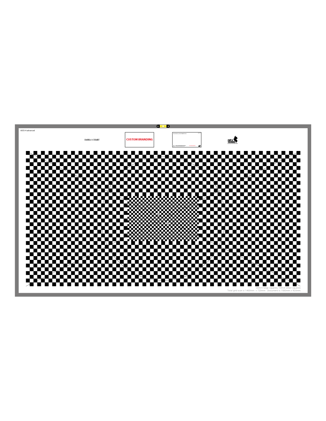La DAMIA 158 Advanced, au format 92×158 cm, intègre un damier de 72×146 cm spécialement conçu pour révéler instantanément toute distorsion optique, qu’il s’agisse d’optiques sphériques ou anamorphiques.