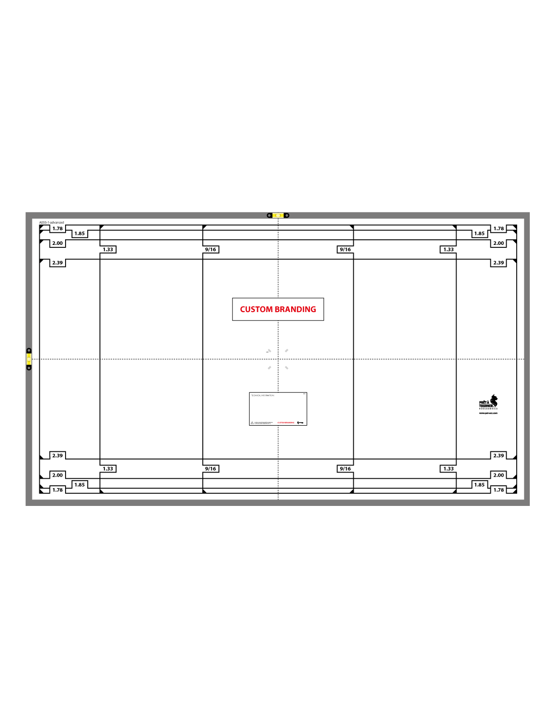 La FRAMA Advanced, au format 92×158 cm, offre une lecture immédiate des différents cadres caméra grâce à des indications claires couvrant les ratios 1.33, 1.78, 1.85, 2.0, 2.85, 2.39 et 9/16.