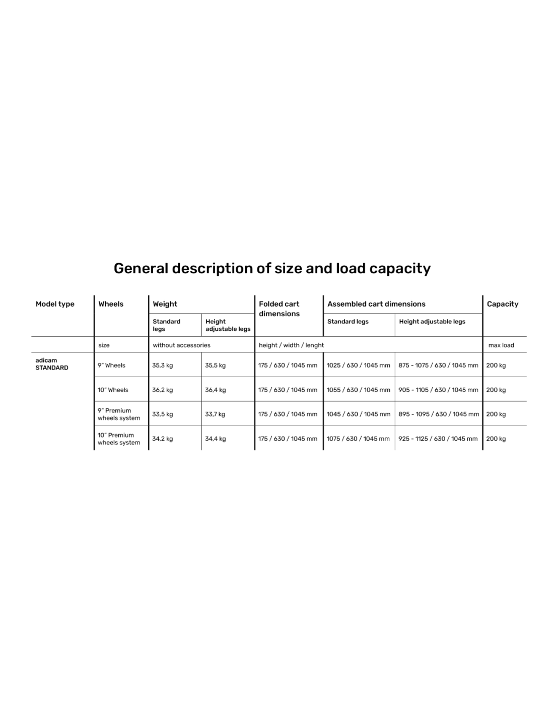 La adicam STANDARD est une roulante de tournage conçue pour les professionnels du cinéma, de la vidéo et de la photographie numérique. Conçue en aluminium de haute qualité, elle offre un excellent rapport poids/charge, avec une capacité de transport allant jusqu’à 200 kg pour seulement 35,7 kg à vide.
