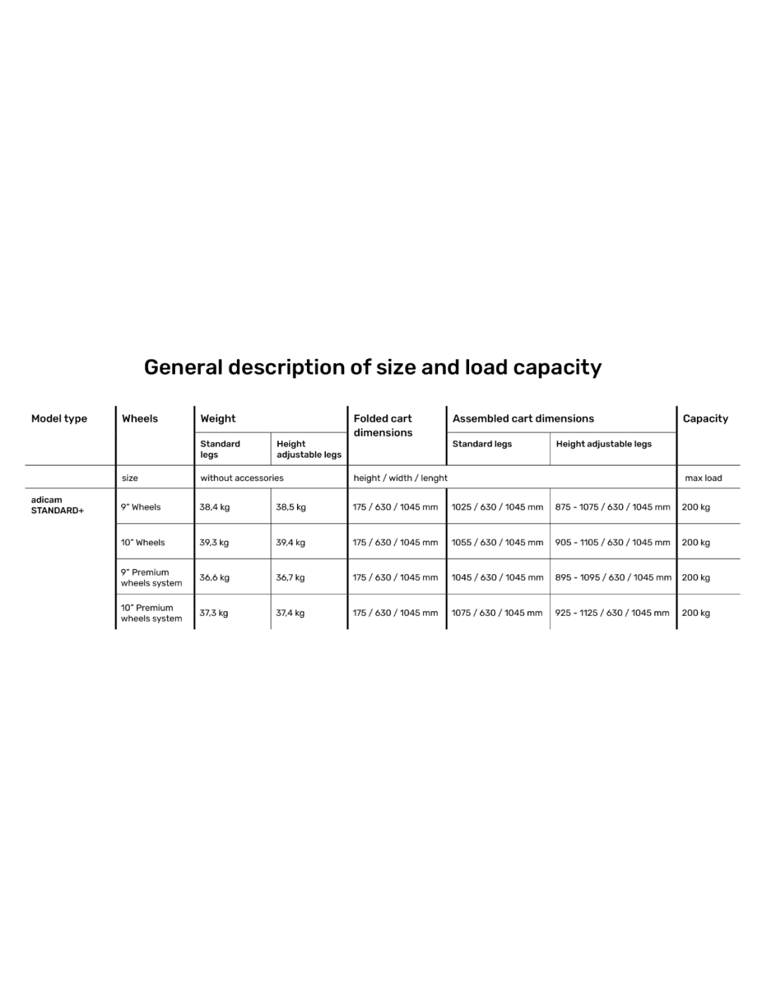 Adicam STANDARD+ – Roulante professionnelle avec plateau rabattable