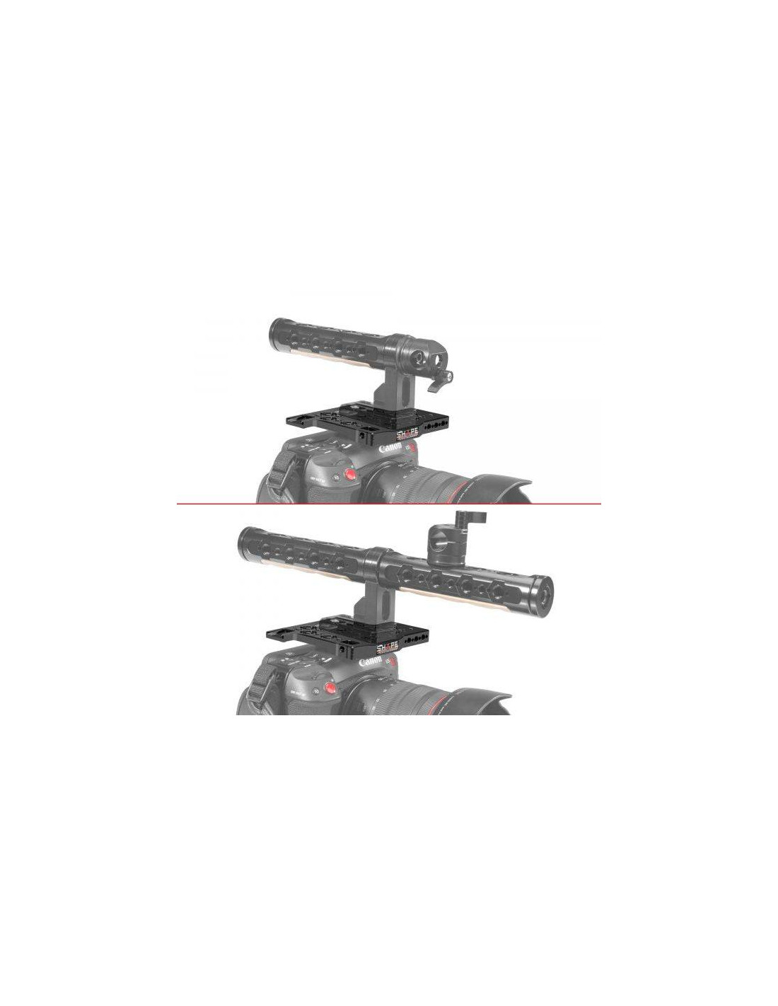 La poignée supérieure est doublée de bois d’érable canadien et permet de monter des accessoires (moniteur, micro ou lampe vidéo jusqu’à 2 kg) grâce à sa griffe froide et son support inclinable.