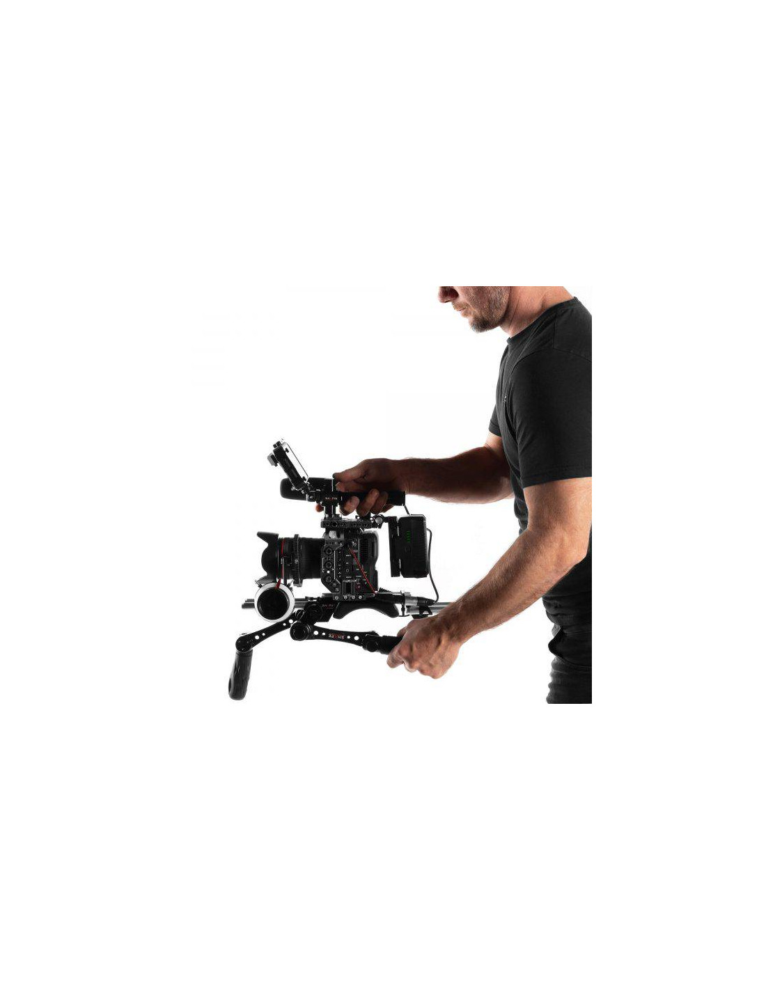 Ce kit complet comprend une cage ajustée en aluminium CNC avec plaques supérieures, latérales et inférieures, une poignée supérieure en forme de L intégrant la technologie Push-Button SHAPE, ainsi qu’une poignée rapide Arri Rosette.