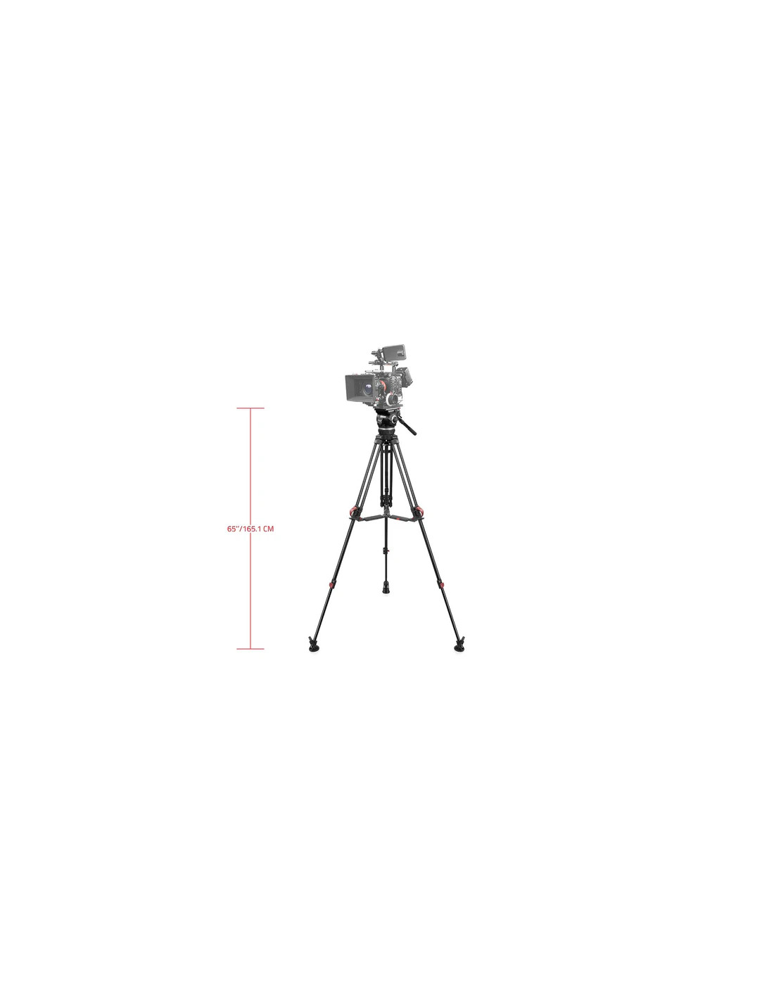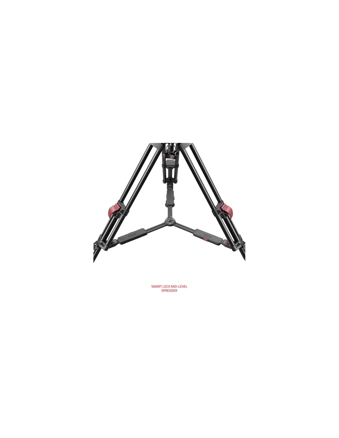 Le trépied en aluminium SDS à deux étages, doté de verrous Red Lock, assure une mise en place rapide et une stabilité optimale sur tous types de tournages.