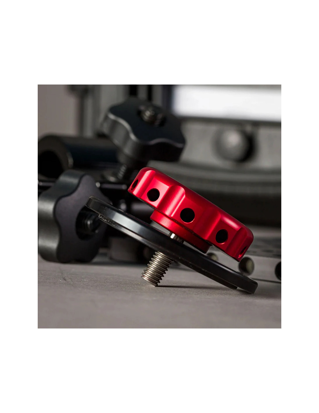 Idéale pour les configurations nécessitant des réglages fréquents, cette molette 3/8" en aluminium anodisé (noir et rouge) permet un serrage manuel rapide sans outil. Dotée d’un filetage en acier inoxydable, elle garantit solidité, durabilité et confort d’utilisation sur les tournages intensifs.