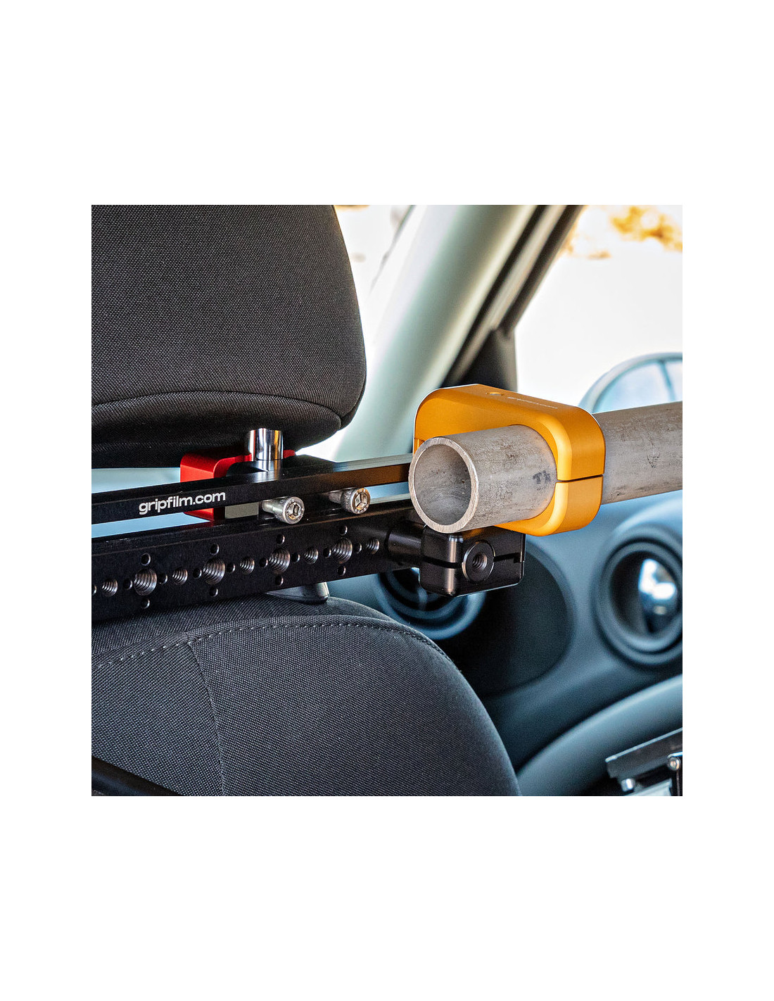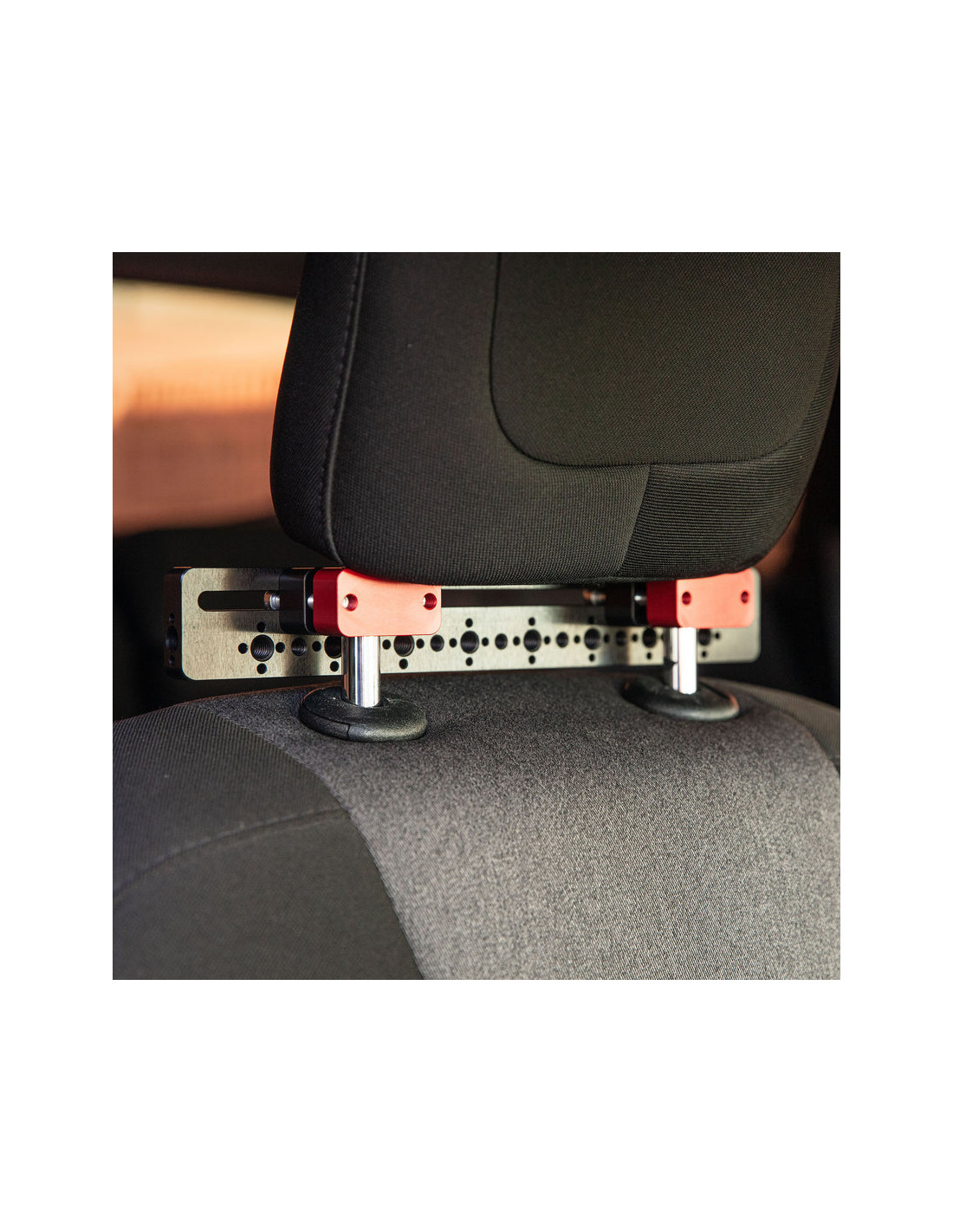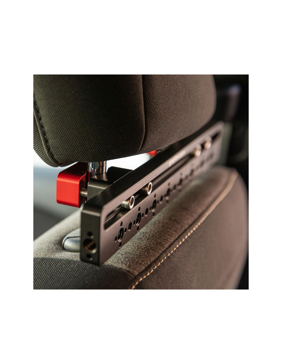 Ce support aluminium haute résistance de 273 mm s’adapte aux tiges d’appuie-tête de 12,5 mm à 19 mm. Doté de pas de vis 1/4"-20 et 3/8"-16, de trous anti-twist ARRI et de colliers rouge et noir anodisés, il permet une fixation précise et sécurisée d’accessoires cinéma. Idéal pour les configurations embarquées discrètes et efficaces.